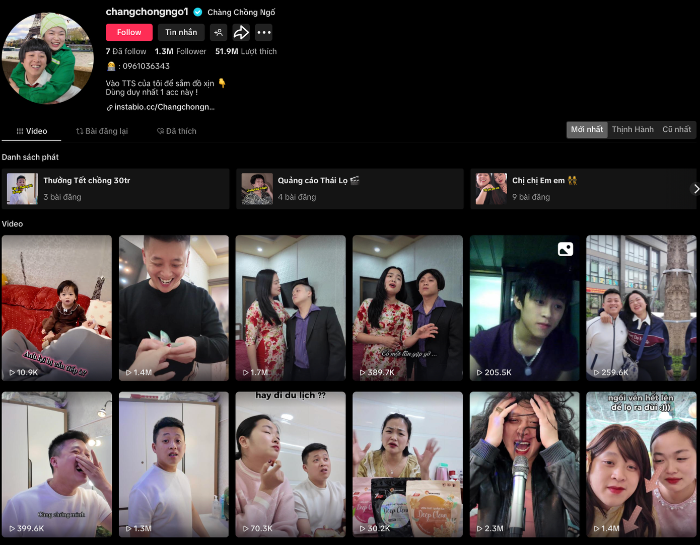 Vợ chồng anh Dũng - chị Phương sở hữu kênh TikTok 1,3 triệu lượt theo dõi.