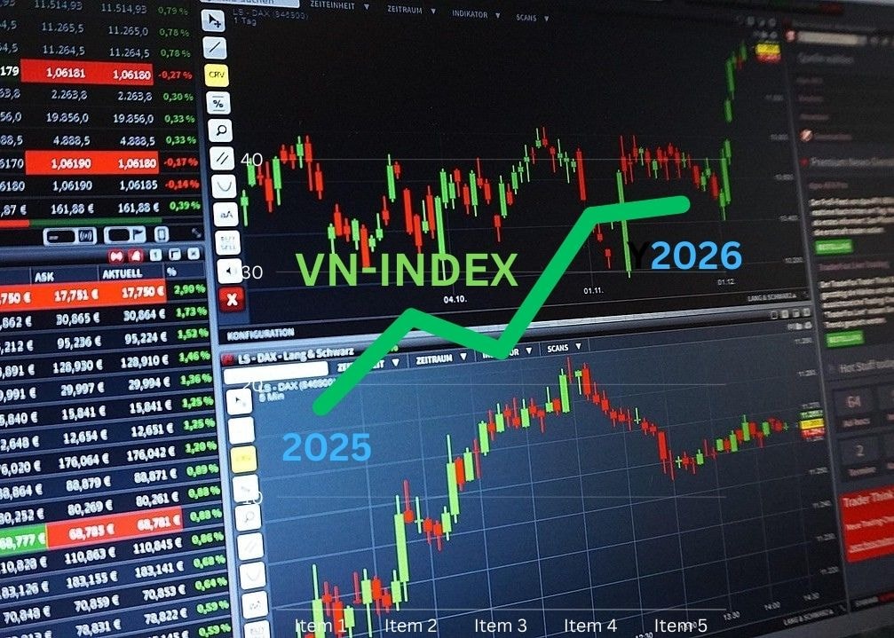Công ty chứng khoán Vietcap dự báo, VN-Index có thể tăng lên mức 2.033 điểm năm 2026, tương ứng mức tăng khoảng 17% so với mặt bằng năm trước. Động lực chính cho kịch bản này đến từ tăng trưởng lợi nhuận doanh nghiệp tiếp tục duy trì ở mức cao, trong khi định giá thị trường được kỳ vọng trở nên hấp dẫn hơn, tương ứng với mức P/E dự kiến khoảng 14,4 lần, thấp hơn đáng kể so với mặt bằng hiện tại.