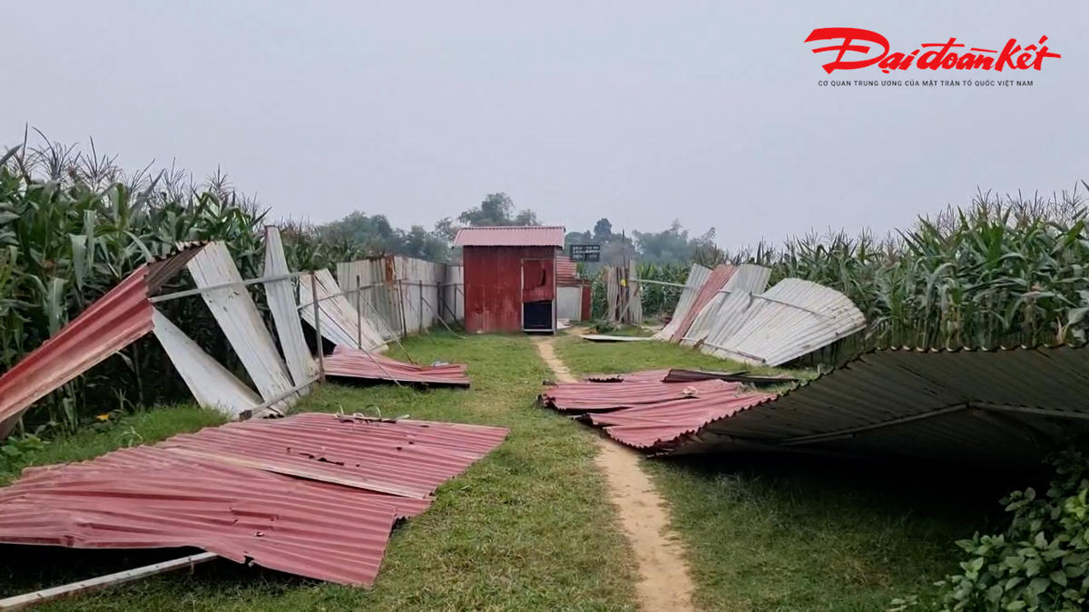 Trên 150 m hàng rào và nhiều tài sản bị đổ rạp. Ảnh: Hương Trà.