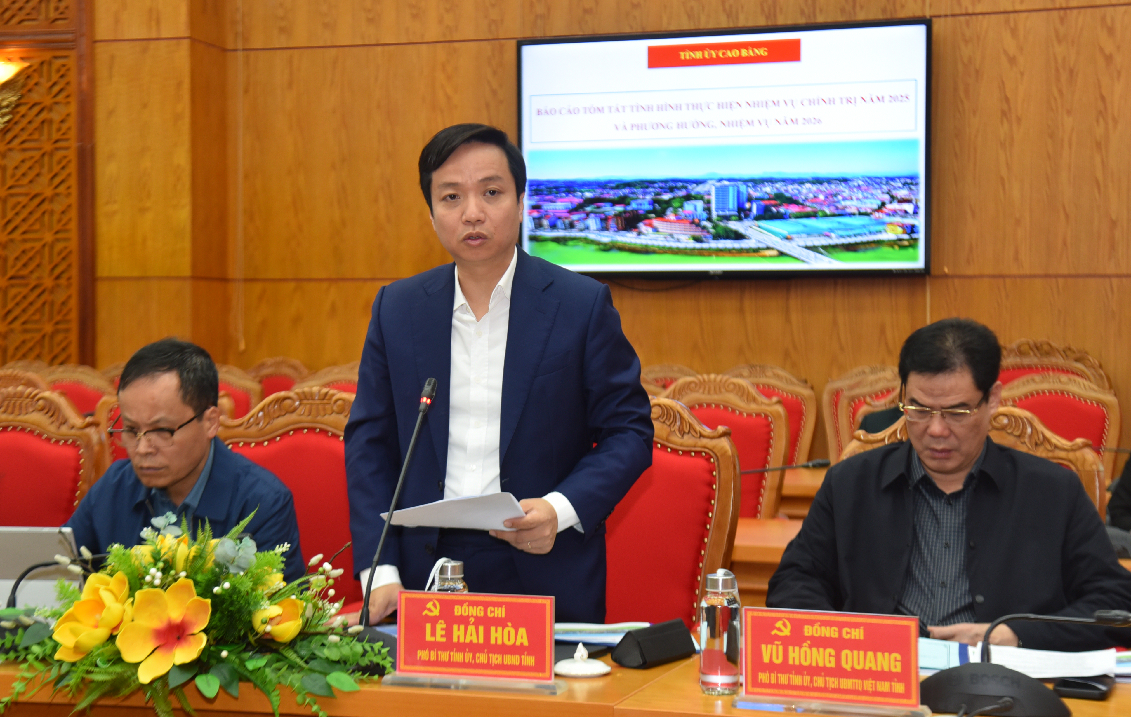 Thông tin với đoàn công tác về tình hình phát triển kinh tế - xã hội năm 2025, Chủ tịch UBND tỉnh Lê Hải Hòa cho biết: Kinh tế của tỉnh duy trì đà tăng trưởng cao nhất trong giai đoạn 2021 - 2025 với tốc độ tăng trưởng GRDP năm 2025 ước đạt 7,22%. Tổng thu ngân sách Nhà nước lần đầu tiên đạt trên 4.000 tỷ đồng. Trong đó, thu từ xuất nhập khẩu đạt khoảng 2.230 tỷ đồng. Trên 19.000 hộ nghèo, cận nghèo được hỗ trợ xóa nhà tạm, nhà dột nát với tổng kinh phí trên 955 tỷ đồng, góp phần ổn định đời sống nhân dân, củng cố thế trận lòng dân, nhất là ở vùng sâu, vùng xa, vùng biên giới. Mặc dù đạt được những kết quả tích cực song tăng trưởng kinh tế của tỉnh chưa thật sự bền vững; thu hút đầu tư và sức chống chịu của doanh nghiệp còn yếu. Đặc biệt, thiên tai năm 2025 gây thiệt hại trên 4.200 tỷ đồng, vượt xa khả năng tự cân đối của địa phương.