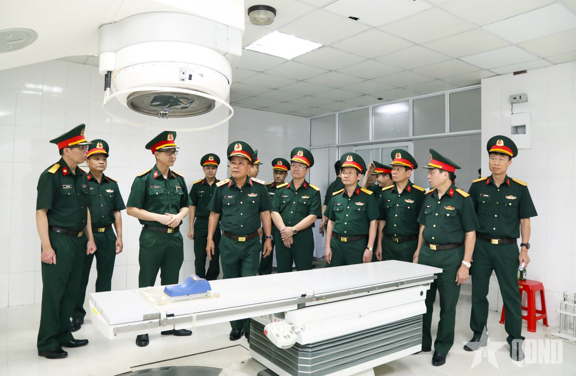 Qua kiểm tra thực tế tại Viện Y học phóng xạ và U bướu Quân đội, Trung tướng Trần Minh Đức ghi nhận, biểu dương sự nỗ lực và những thành tích mà Viện đã đạt được thời gian qua. Để hoàn thành tốt các mục tiêu của năm 2025, đồng chí Chủ nhiệm Tổng cục yêu cầu Viện tiếp tục tham mưu Cục Quân y về An toàn bức xạ và đề xuất kiểm tra an toàn bức xạ các cơ sở quân y dùng nguồn phóng xạ; triển khai huấn luyện ứng phó y tế sự cố bức xạ, hạt nhân cho các đơn vị phía Bắc theo kế hoạch của Cục Quân y; đảm bảo quân số, phương tiện cho Đội ứng phó y tế sự cố bức xạ, hạt nhân, 2 tổ cấp cứu cơ động, sẵn sàng đáp ứng tình huống đột xuất. Tiếp tục đẩy mạnh nghiên cứu về y học hạt nhân, phóng xạ và ung bướu, chú trọng gắn kết quả nghiên cứu với ứng dụng phục vụ đơn vị. Tổ chức tập huấn nâng cao chất lượng chăm sóc và an toàn người bệnh, huấn luyện kỹ năng giao tiếp…