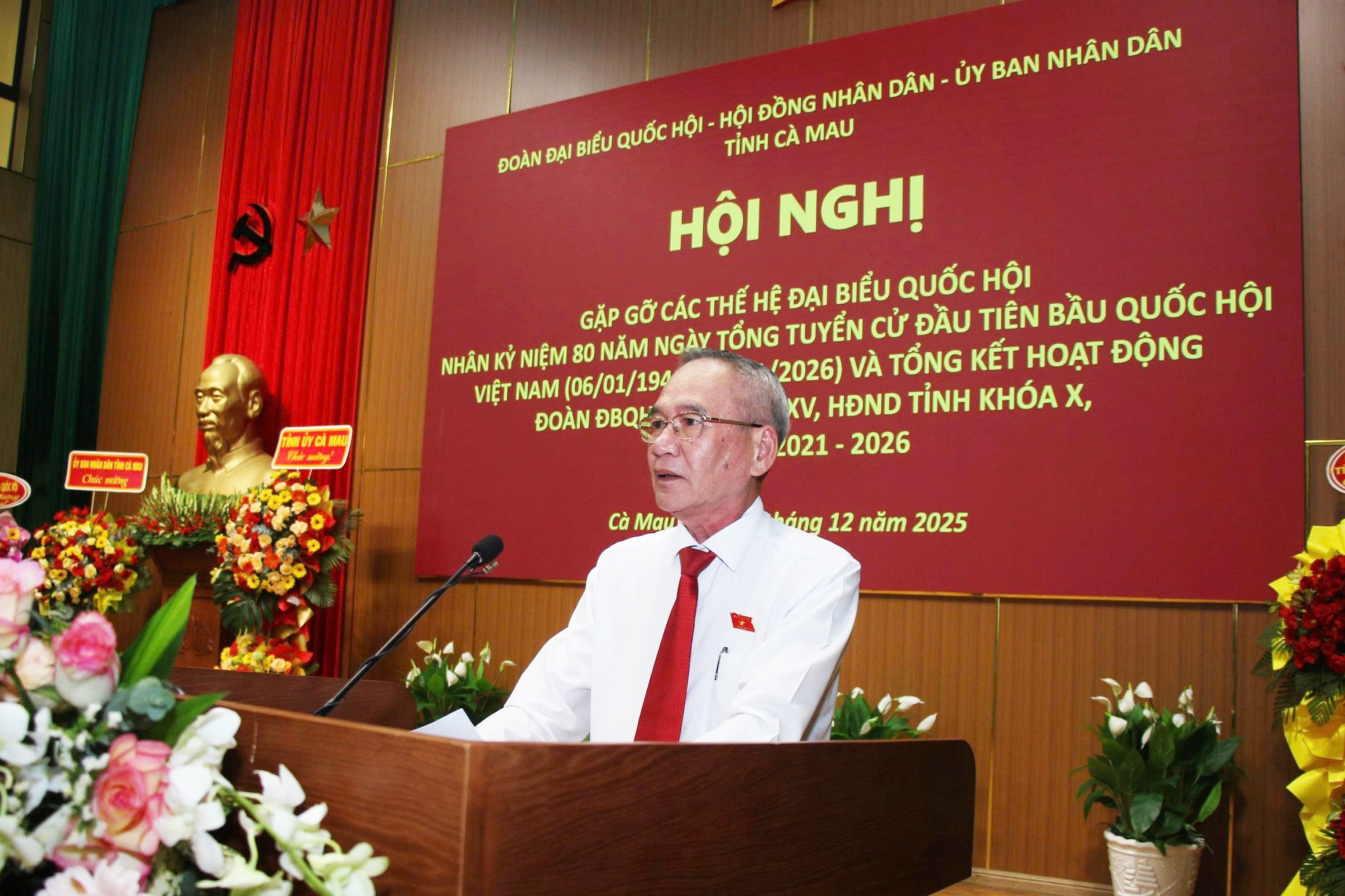 Bí thư Tỉnh ủy khẳng định, các thế hệ ĐBQH tỉnh Cà Mau qua các thời kỳ đã có nhiều đóng góp quan trọng, để lại dấu ấn rõ nét trong hoạt động nghị trường cũng như trong quá trình xây dựng, phát triển tỉnh nhà. Tỉnh ủy Cà Mau trân trọng ghi nhận và đánh giá cao trí tuệ, tâm huyết, bản lĩnh và tinh thần trách nhiệm của các đại biểu Quốc hội qua các nhiệm kỳ.