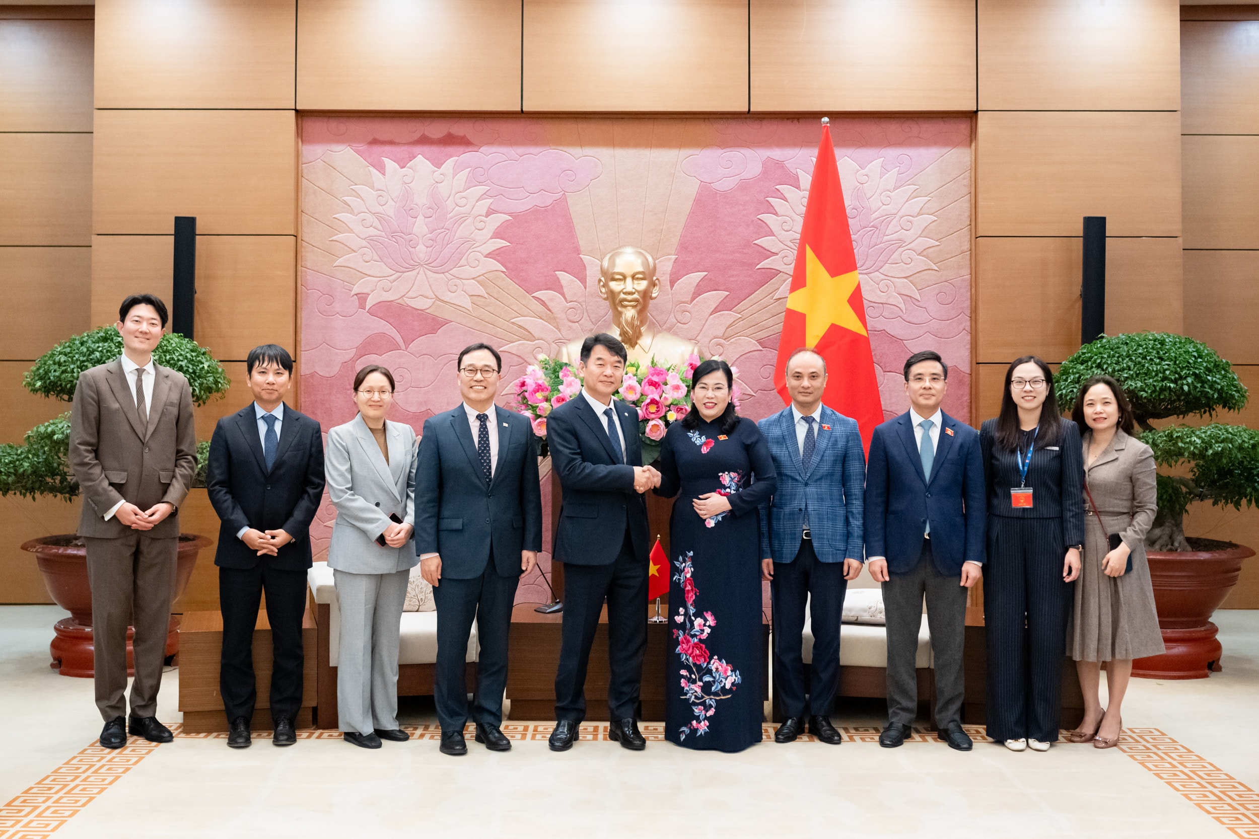 Chủ nhiệm Ủy ban Khoa học, Công nghệ và Môi trường Nguyễn Thanh Hải; Chủ tịch Nhóm Nghị sĩ hữu nghị Hàn Quốc - Việt Nam Moon Jin Seog và các đại biểu