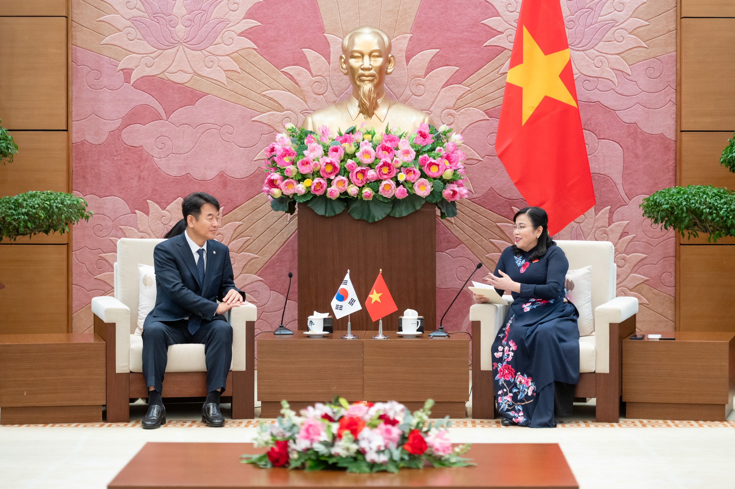Chủ nhiệm Ủy ban Khoa học, Công nghệ và Môi trường cũng mong muốn hai Quốc hội tăng cường phối hợp, ủng hộ lẫn nhau trên các diễn đàn liên nghị viện khu vực và thế giới, đóng góp tích cực vào gìn giữ môi trường hòa bình, ổn định, hợp tác và phát triển của khu vực và thế giới; đề nghị Quốc hội và Hội NSHN Hàn Quốc - Việt Nam quan tâm, ủng hộ và tạo điều kiện hơn nữa cho hoạt động của các hội người Việt tại Hàn Quốc, tạo điều kiện về y tế và giáo dục để con em các gia đình Hàn Quốc - Việt Nam trở thành những công dân đóng góp tích cực cho xã hội Hàn Quốc sau này, là cầu nối quan trọng, kế thừa và phát triển quan hệ tốt đẹp giữa hai nước.