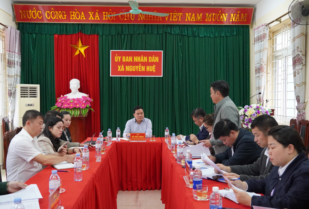 Đoàn kiểm tra làm việc tại xã Nguyễn Huệ.