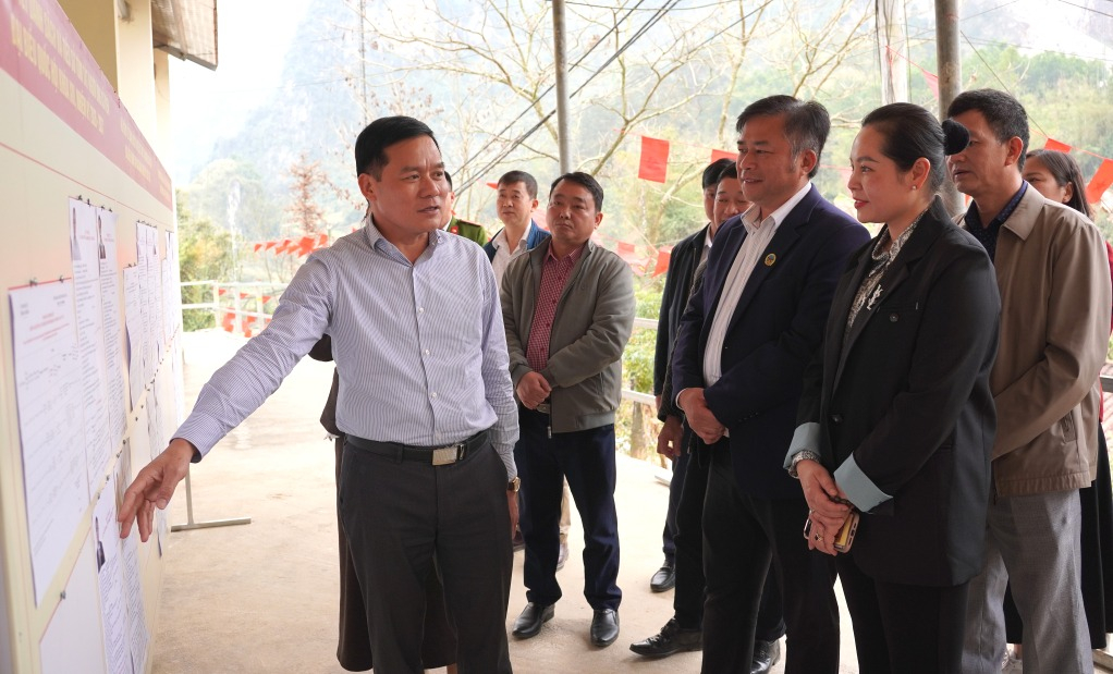 Đoàn công tác kiểm tra thực tế tại 3 khu vực bỏ phiếu, gồm: số 2 (xóm Bản Cải, Lũng Quang); số 3 (xóm Cốc Phát, Lũng Cút); số 4 (xóm NậmLoát, Thua Bó). Tại các điểm kiểm tra, đoàn công tác kiểm tra công tác chuẩn bị cơ sở vật chất, việc bố trí khu vực bỏ phiếu, niêm yết danh sách cử tri và các điều kiện phục vụ bầu cử.