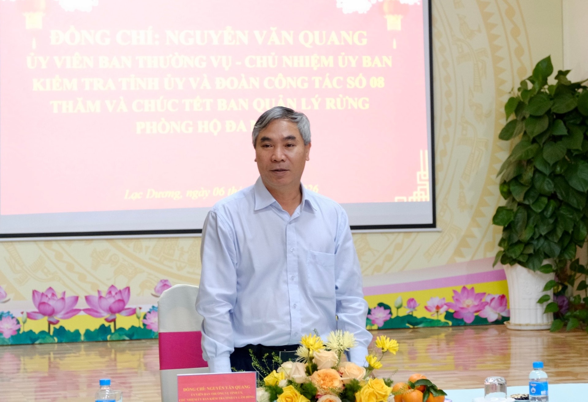 Đồng chí Nguyễn Văn Quang đã gửi lời thăm hỏi, động viên và gửi gắm niềm tin với các cán bộ Ban Quản lý rừng phòng hộ Đạ Nhim trong công tác bảo vệ rừng khi dịp Tết đến, xuân về