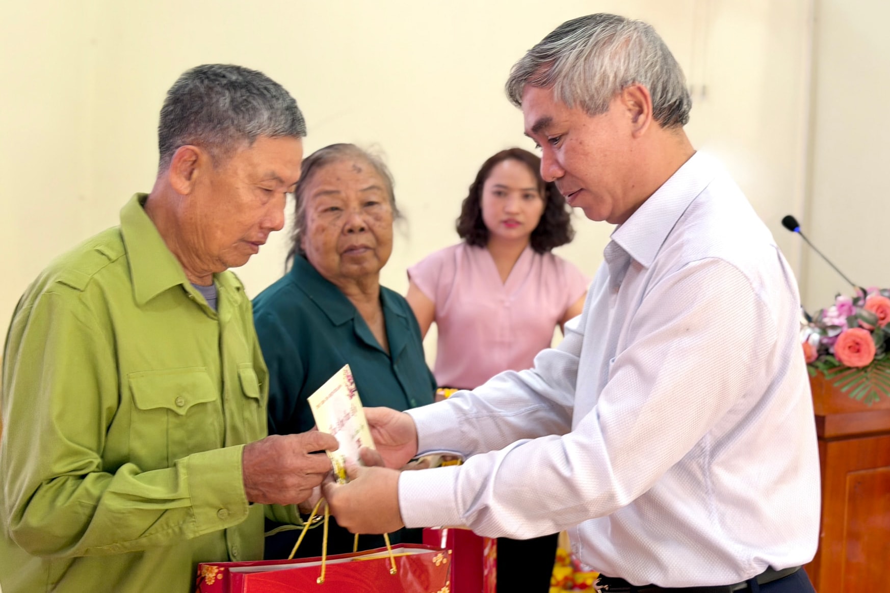 Chủ nhiệm Ủy ban Kiểm tra Tỉnh ủy Nguyễn Văn Quang trao quà Tết và gửi lời thăm hỏi đến các gia đình có công với cách mạng xã Lạc Dương