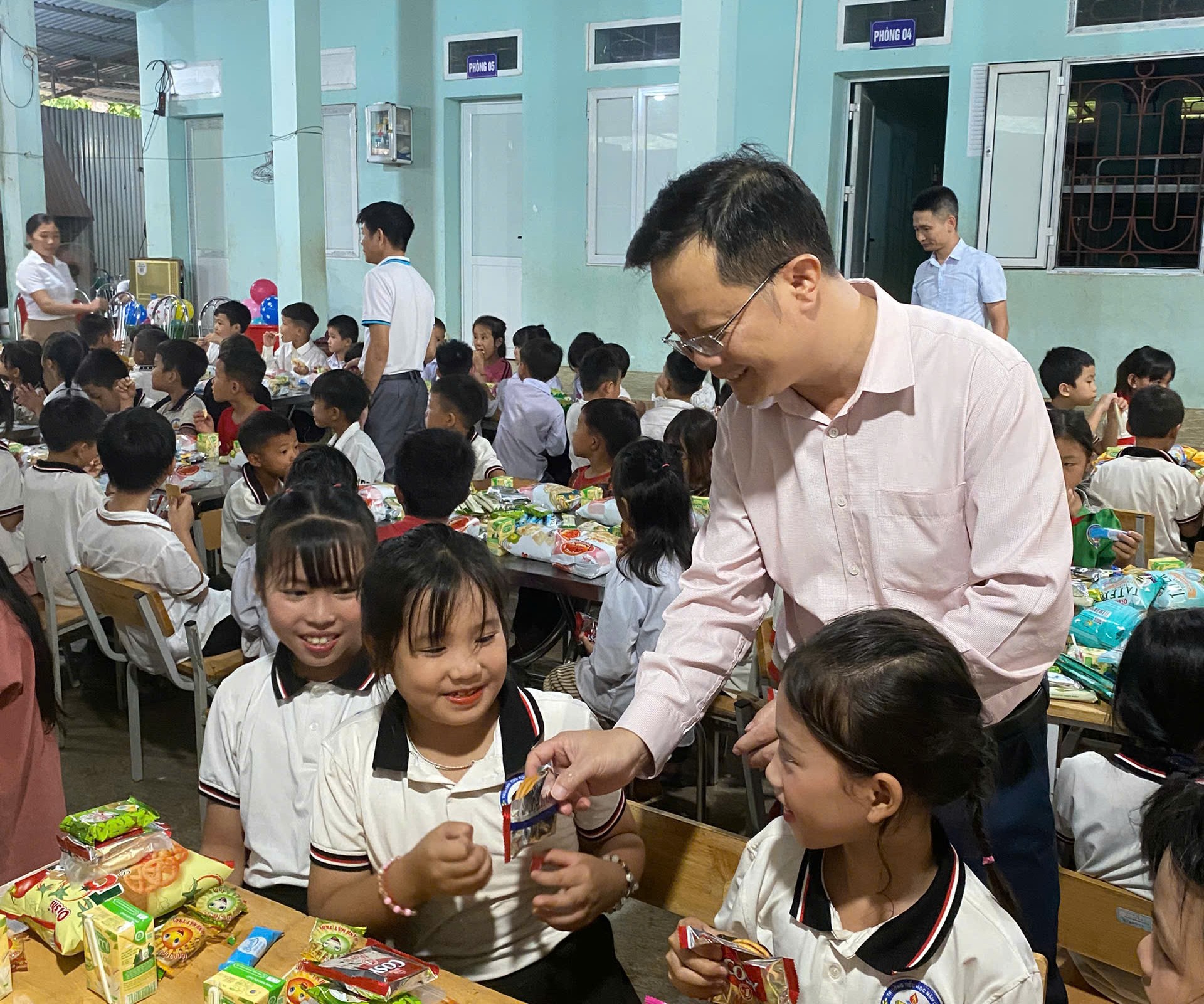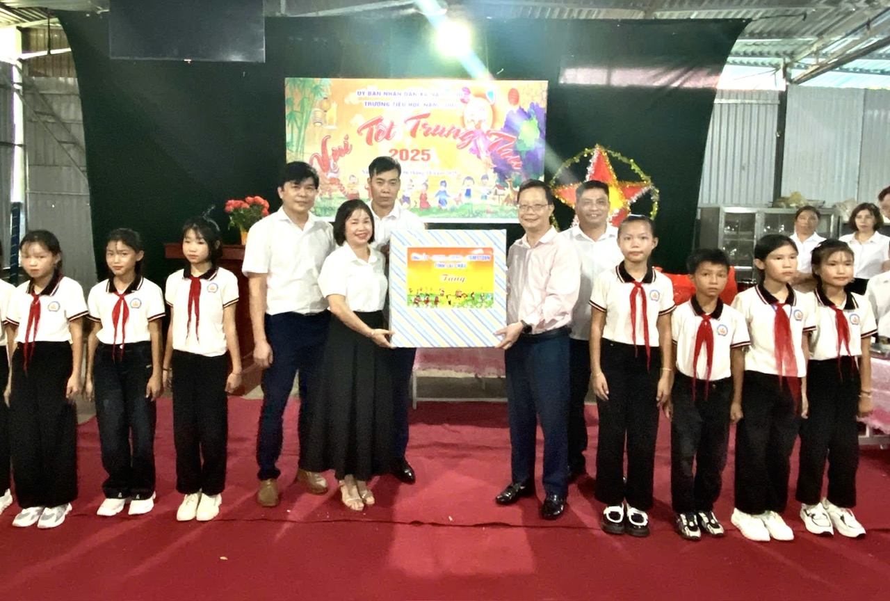 Hỏi thăm sức khỏe, tình hình học tập của thiếu niên, nhi đồng, đồng chí Nguyễn Ngọc Vinh - Ủy viên Ban Thường vụ, Chủ nhiệm Ủy ban Kiểm tra Tỉnh ủy chúc các em đón tết Trung thu vui vẻ; luôn chăm ngoan, học giỏi; không ngừng tu dưỡng, rèn luyện để xứng đáng là con ngoan, trò giỏi, cháu ngoan Bác Hồ.