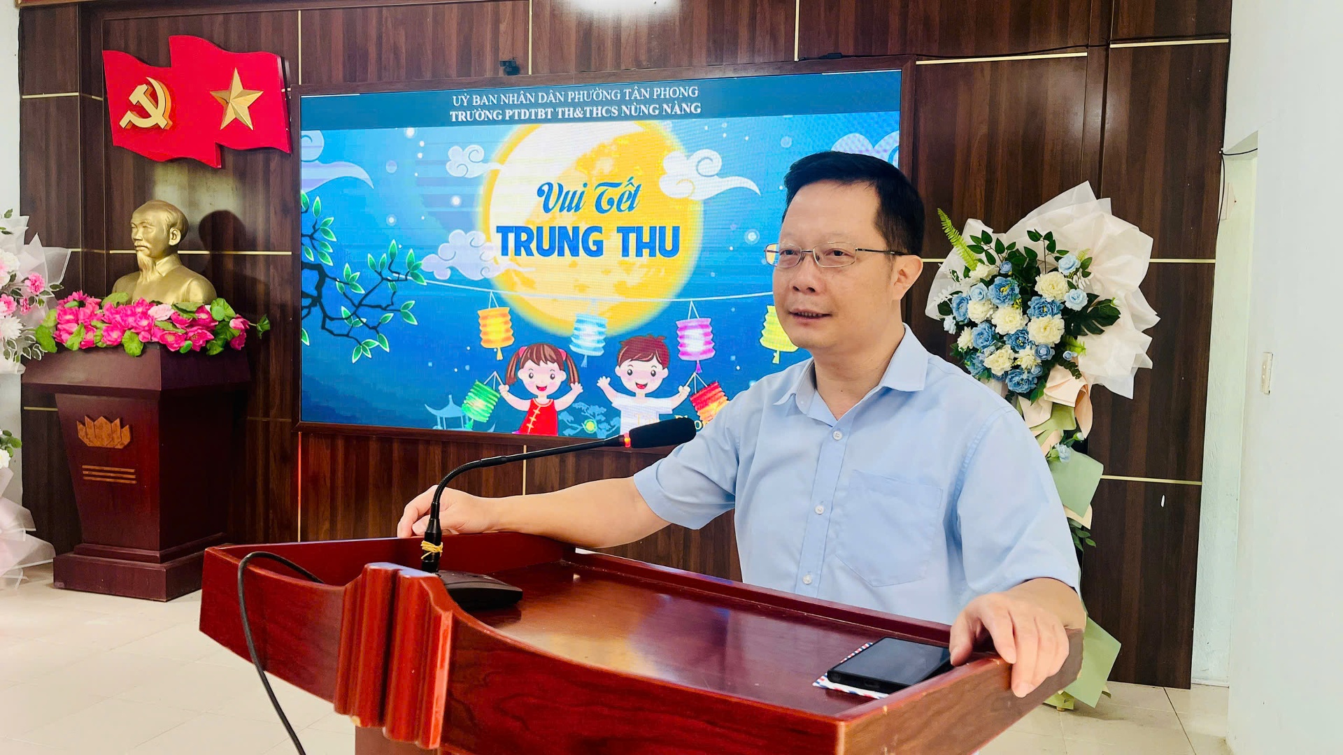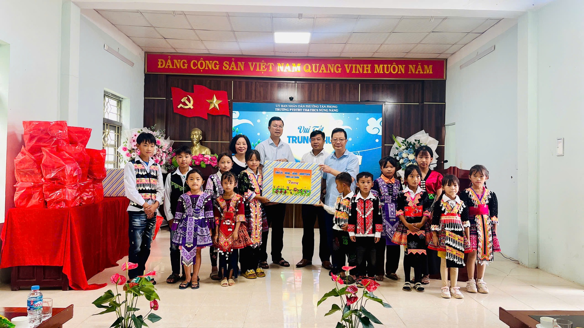 Chúc các em học sinh đón Tết Trung thu vui vẻ, bổ ích, đồng chí cũng đề nghị, cấp ủy Đảng, chính quyền phường Tân Phong và nhà trường tiếp tục nâng cao chất lượng giáo dục, chăm sóc trẻ em; tạo điều kiện tốt nhất để các em phát triển toàn diện; quan tâm đến đời sống trẻ em có hoàn cảnh đặc biệt khó khăn, trẻ em thuộc diện gia đình chính sách.
