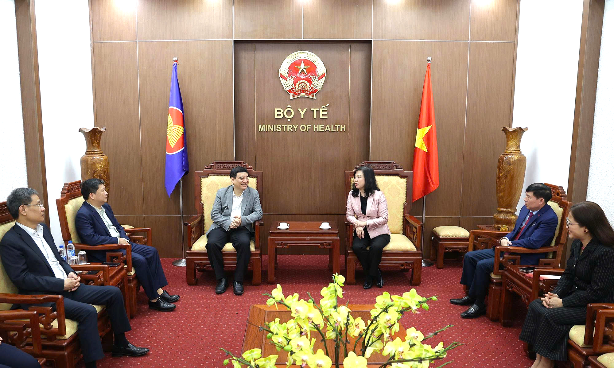 Tiếp đoàn, về phía Bộ Y tế có Ủy viên Ban Chấp hành Trung ương Đảng, Bộ trưởng Bộ Y tế Đào Hồng Lan; đại diện lãnh đạo một số Vụ, Cục .