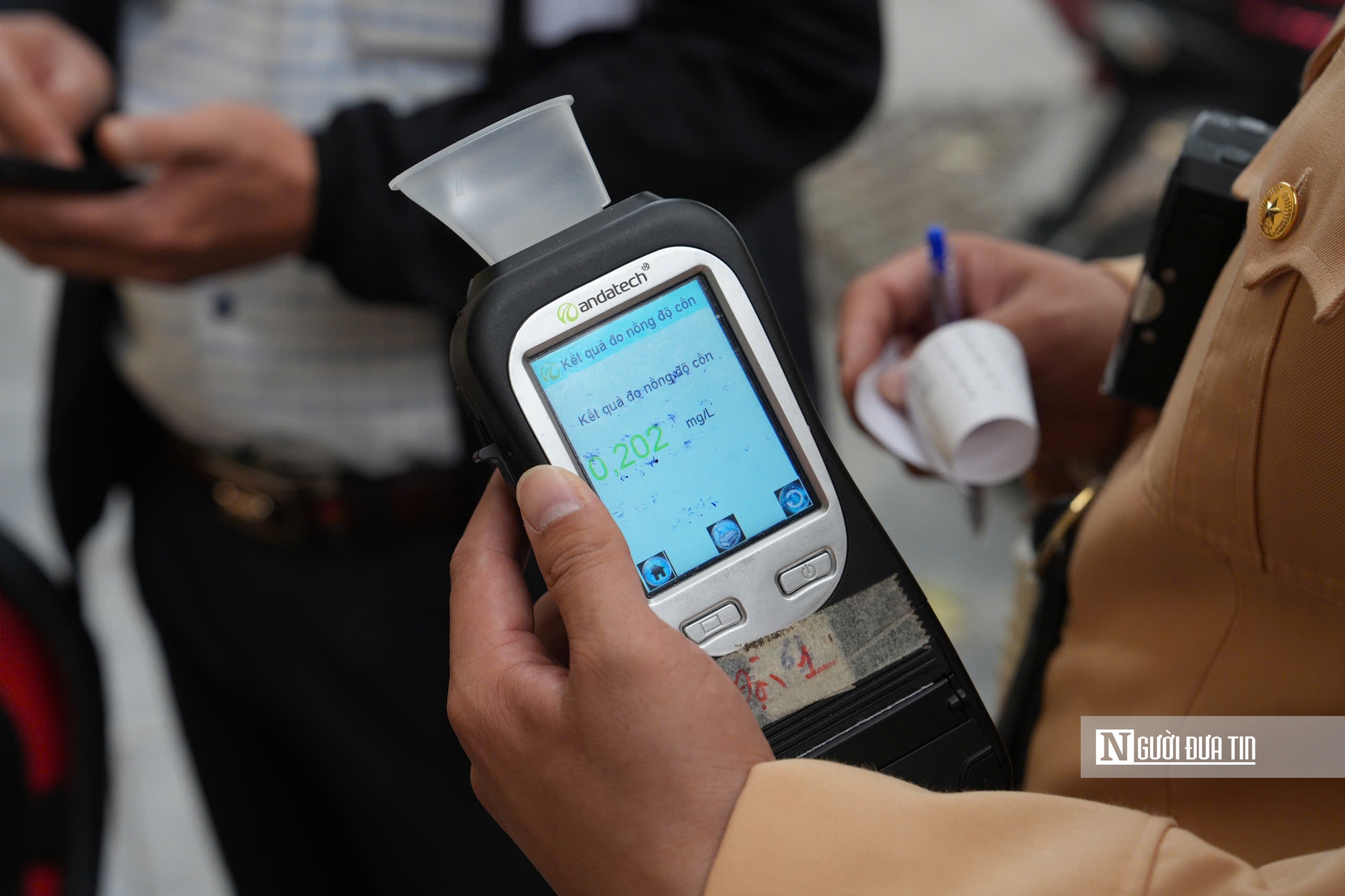 Trong buổi làm việc, lực lượng chức năng đã phát hiện và xử phạt nhiều trường hợp sử dụng rượu bia khi tham gia giao thông. Nhận thấy điều bất thường từ một nan tài xế, ngay lập tức lực lượng chức năng đã ra hiệu lệnh dừng xe, yêu cầu thổi máy kiểm tra, qua đó phát hiện tài xế này có nồng độ cồn trong hơi thở. Kết quả đo cho thấy tài xế này vi phạm dưới mức 0,25 miligam/lít khí thở và không đội mũ bảo hiểm khi tham gia giao thông.