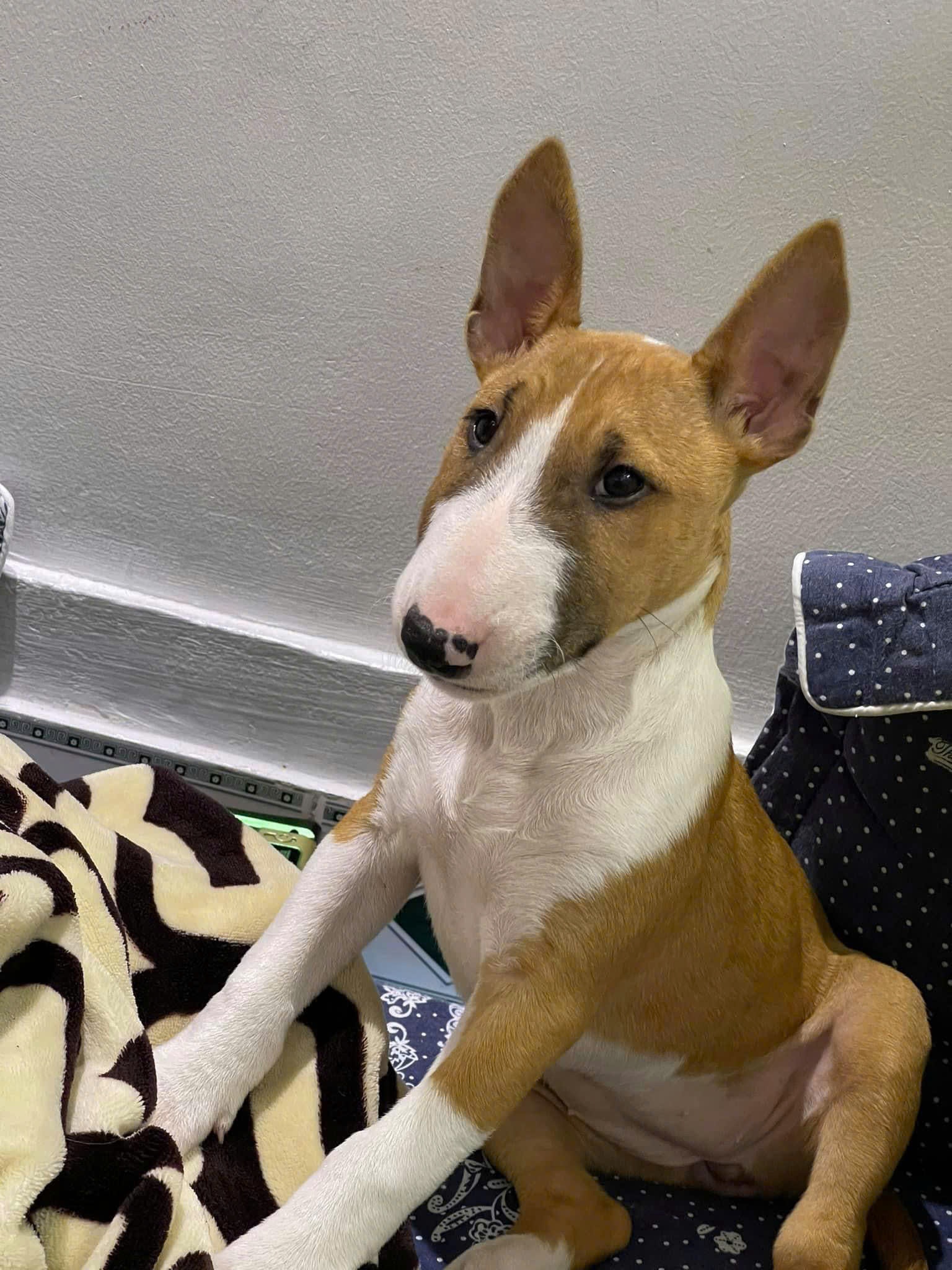 Theo anh, Tam là chó cái, 4 tuổi, nặng khoảng 22-23 kg, thuộc giống bull terrier (chó sục bò) khá phổ thông nhưng ít người nuôi. Bộ lông pha màu nâu trắng lạ mắt khiến nhiều người từng nghĩ Tam là giống corgi chân ngắn.