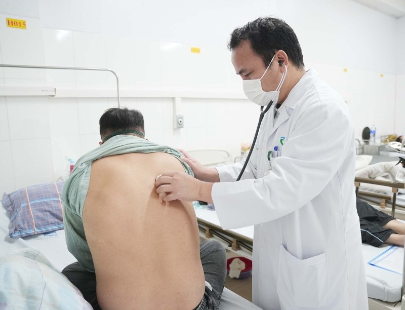 Trường hợp thứ nhất là ông L.Q.C. (69 tuổi, phường Việt Hưng) có tiền sử tăng huyết áp, đái tháo đường và bệnh phổi tắc nghẽn mạn tính (COPD). Sau điều trị cúm A, ông xuất hiện khó thở tăng dần, ho đờm trắng đục, mệt nhiều. Phim X-quang ghi nhận hình ảnh mờ rải rác hai bên phổi. Các bác sĩ xác định bệnh nhân bị viêm phổi sau cúm A trên nền đợt cấp COPD, dễ dẫn đến suy hô hấp nếu xử trí chậm trễ.