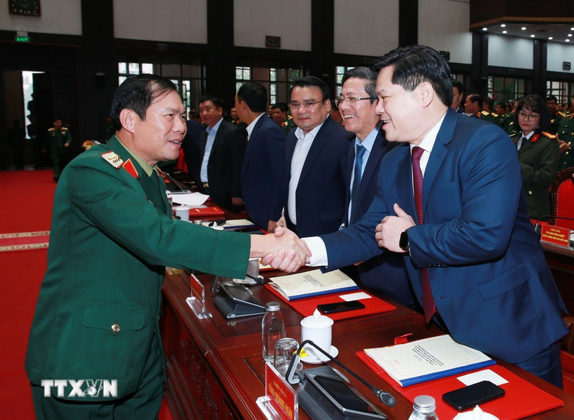 Đại tướng Nguyễn Tân Cương, Ủy viên Trung ương Đảng, Tổng Tham mưu trưởng, Thứ trưởng Bộ Quốc phòng và các đại biểu dự hội nghị. (Ảnh: Trọng Đức/TTXVN)