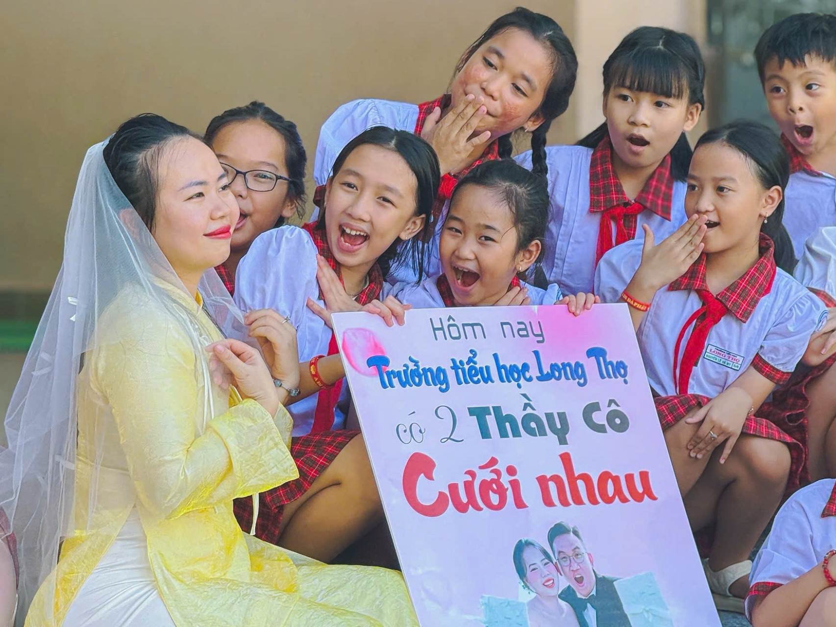 Những ngày qua, mạng xã hội xôn xao bộ ảnh cưới mang tên “Thầy cô cưới nhau”, được thực hiện ngay trong khuôn viên Trường Tiểu học Long Thọ (xã Phước An, Đồng Nai).