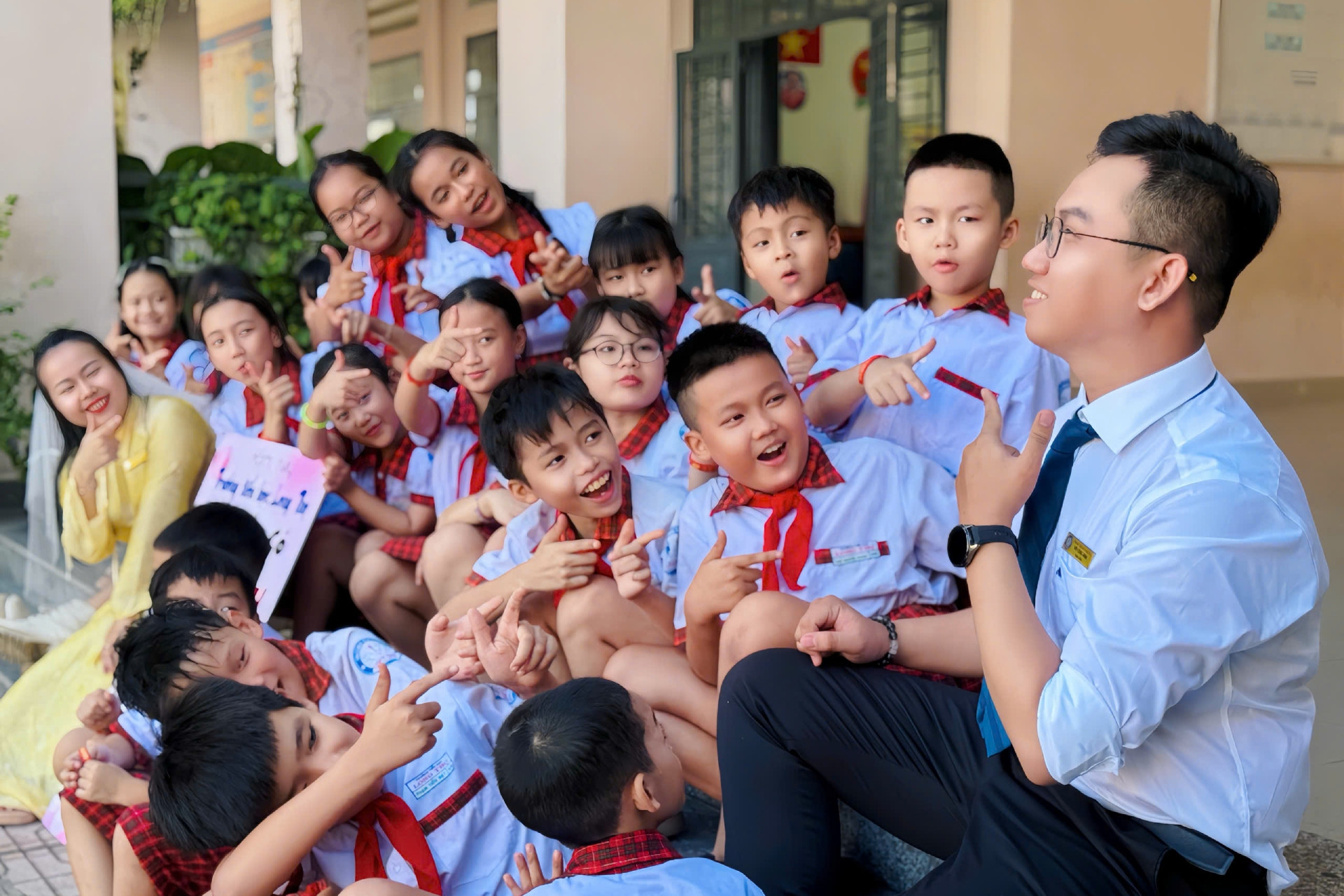 Anh Hậu kể, trong một tiết dạy về bài mở rộng vốn từ “Hạnh phúc”, khi các em lần lượt định nghĩa, đặt câu và trao đổi, một học sinh bất ngờ hỏi “Theo thầy, hạnh phúc của thầy là gì?”. Ngay lúc đó, anh chợt nhận ra, hạnh phúc của mình sẽ trọn vẹn hơn nếu có các em cùng vui.