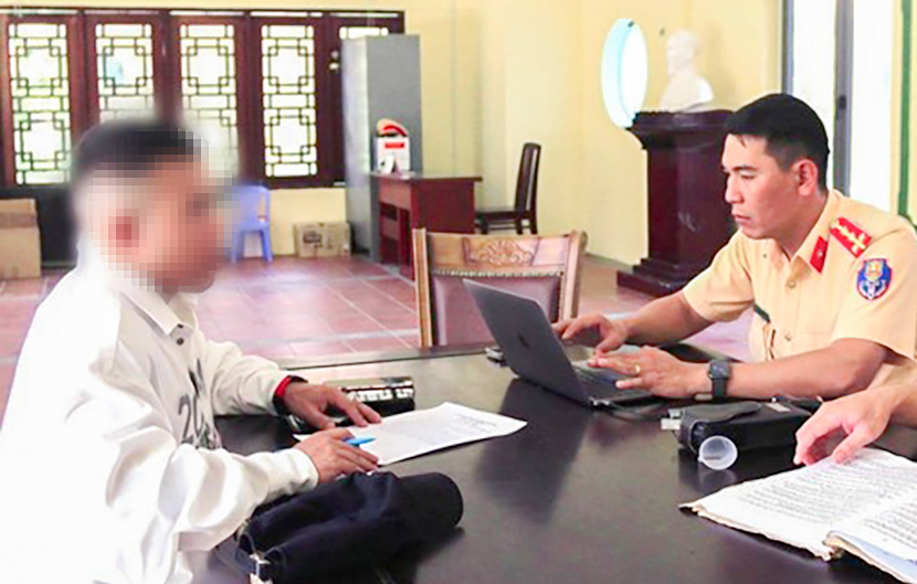 Ông NHV chủ tài khoản TikTok "Bắp Kimochi" làm việc với cơ quan chức năng. Ảnh: MT