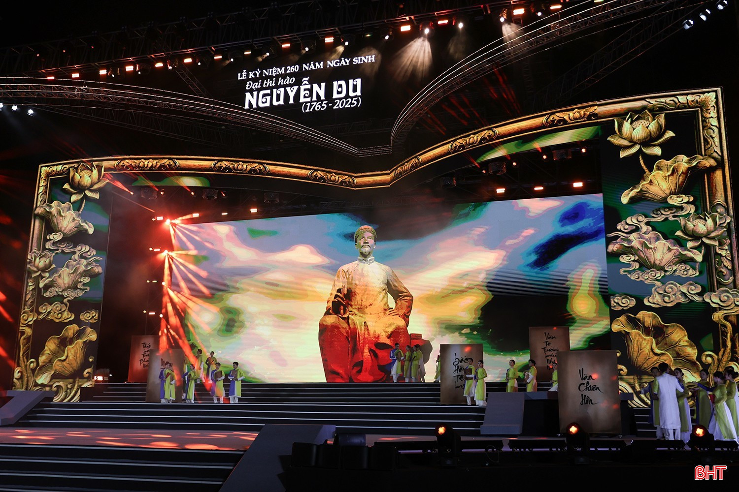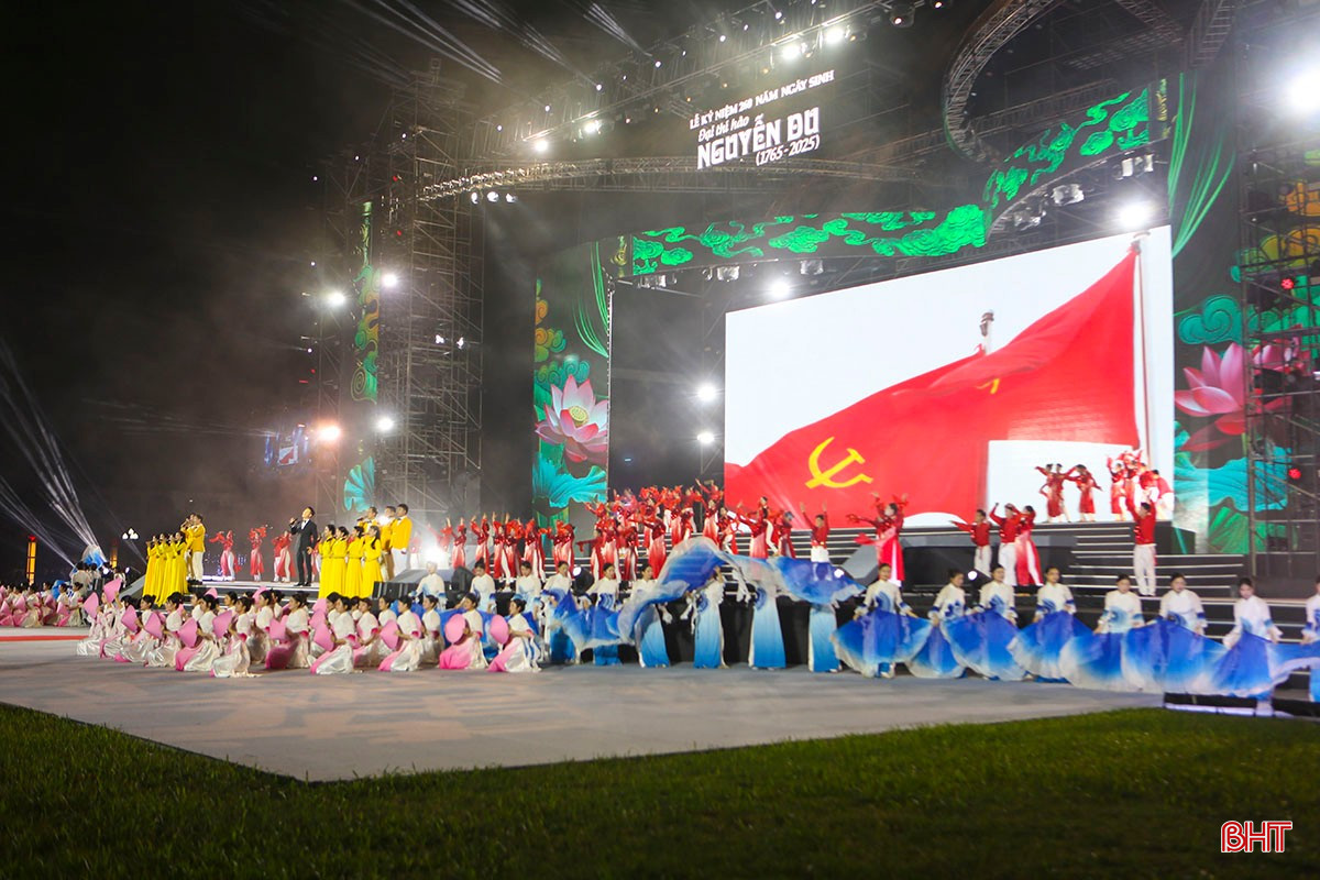 Sau phần lễ đầy trang trọng là chương trình nghệ thuật đặc biệt được dàn dựng công phu có chủ đề: “Đại thi hào Nguyễn Du – Chữ tâm sáng mãi muôn đời” do Nhà hát Nghệ thuật truyền thống Hà Tĩnh cùng nhiều nghệ sĩ, ca sĩ nổi tiếng trong nước thể hiện.
