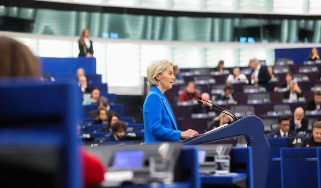 Chủ tịch EC Ursula von der Leyen phát biểu tại Nghị viện châu Âu. Ảnh: EU News.