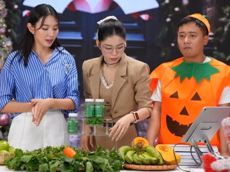 Nhóm Nguyễn Thúc Thùy Tiên, Nguyễn Thị Thái Hằng (Hằng Du Mục), Phạm Quang Linh (Quang Linh Vlogs) quảng cáo cho sản phẩm kẹo Kera.