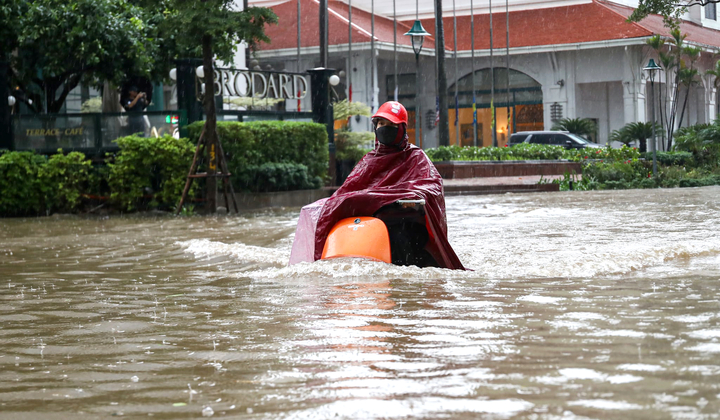 Đường phố Hà Nội ngập sâu sau trận mưa sáng 7/10.