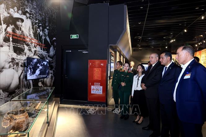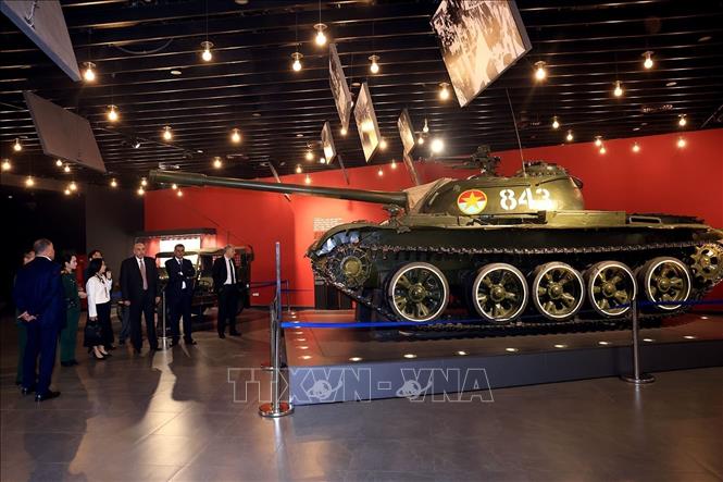 Chủ tịch Hạ viện Jordan Mazen Turki El Qadi tham quan các khu trưng bày tại Bảo tàng Lịch sử Quân sự Việt Nam. Ảnh: Tuấn Anh/TTXVN