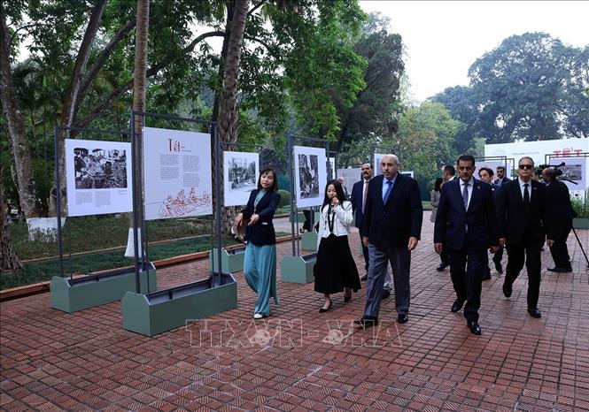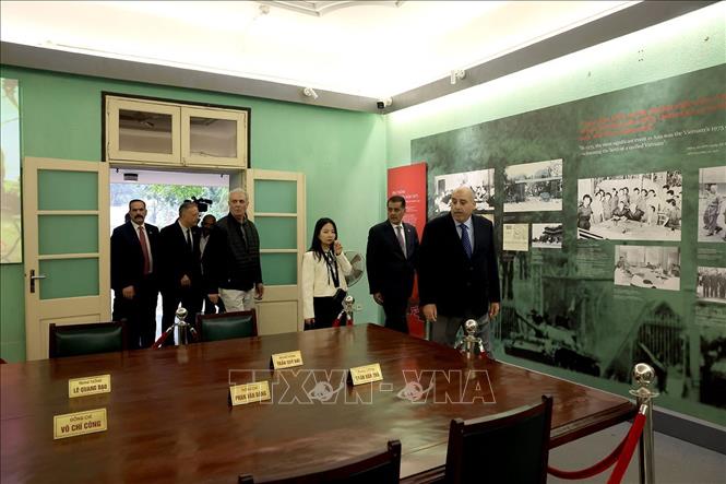 Chủ tịch Hạ viện Jordan Mazen Turki El Qadi cùng đoàn đại biểu đi thăm các di tích trong Hoàng thành Thăng Long. Ảnh: Tuấn Anh/TTXVN