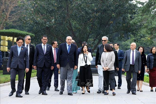 Chủ tịch Hạ viện Jordan Mazen Turki El Qadi cùng đoàn đại biểu đi thăm khu di tích Hoàng thành Thăng Long. Ảnh: Tuấn Anh/TTXVN