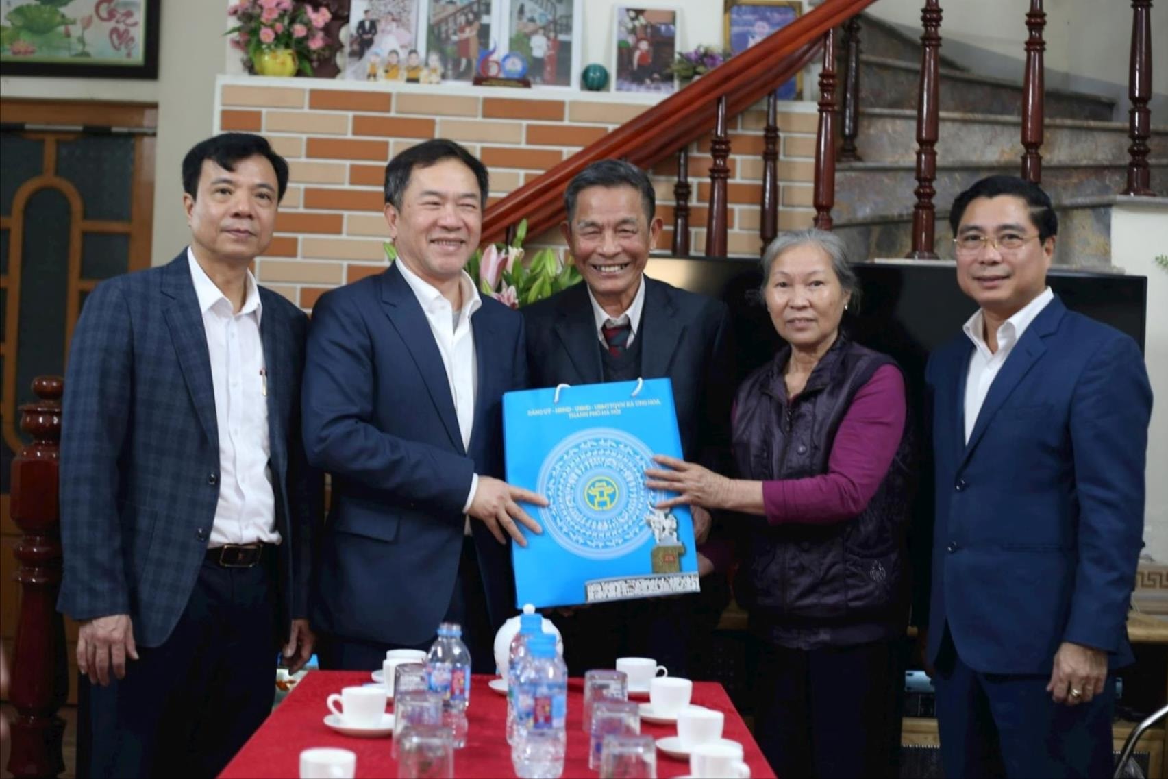 Lãnh đạo xã Ứng Hòa thăm, chúc Tết các gia đình chính sách tiêu biểu trên địa bàn xã. Ảnh: Sơn Tùng