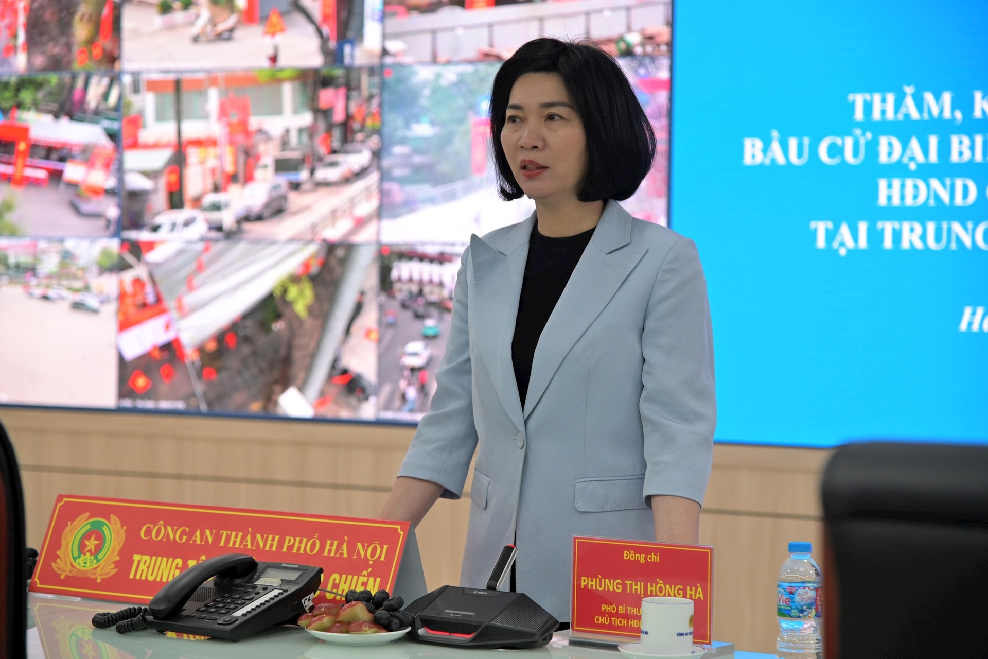Tại buổi làm việc, Chủ tịch HĐND thành phố Phùng Thị Hồng Hà nhiệt liệt biểu dương và đánh giá rất cao sự vào cuộc chủ động, bài bản, đi trước một bước của Công an thành phố trong việc triển khai các nhiệm vụ bảo đảm an ninh trật tự cho cuộc bầu cử.