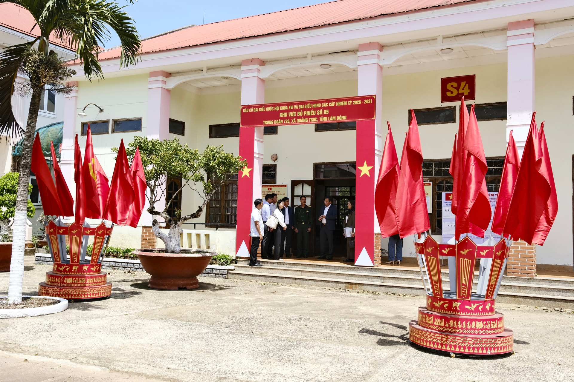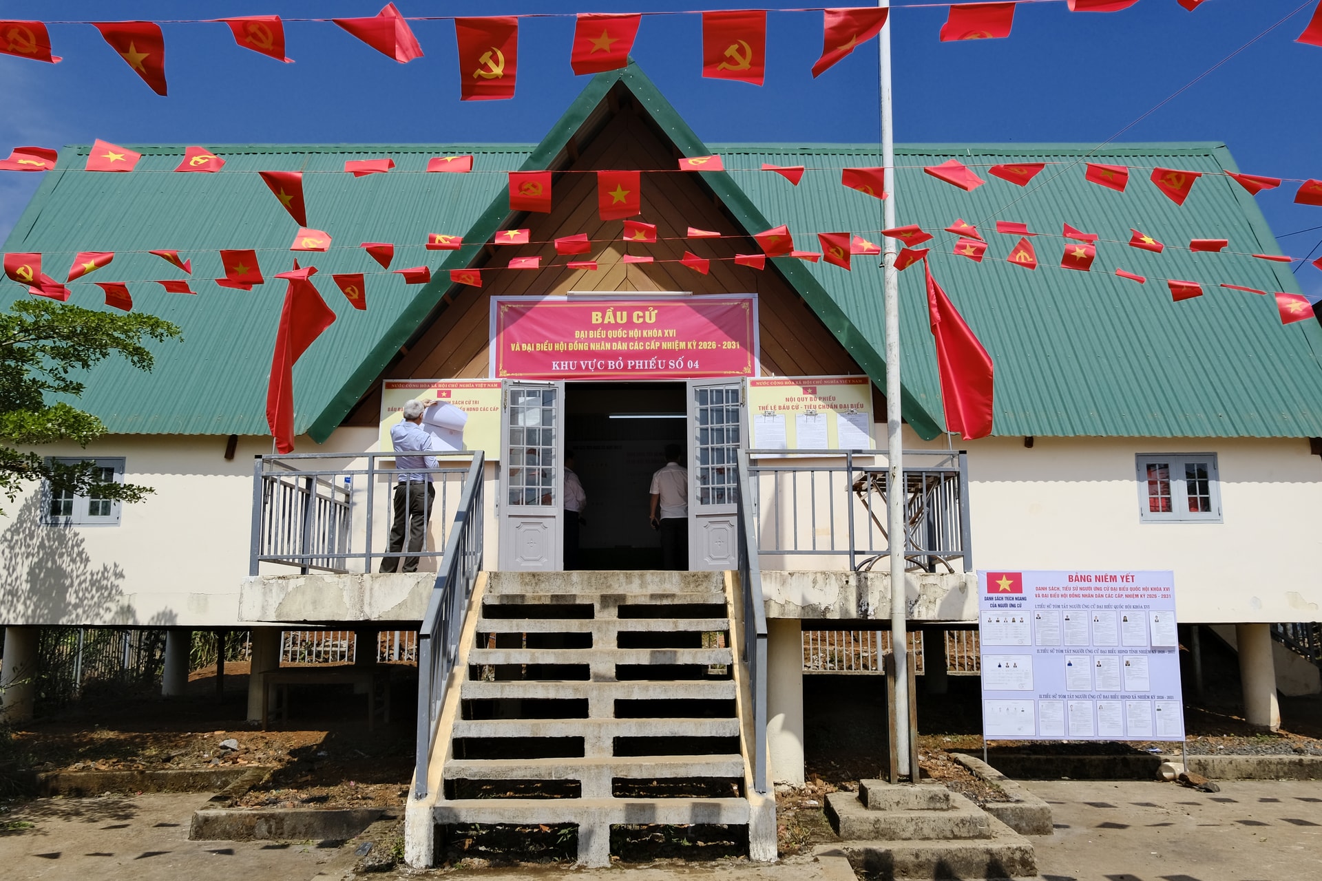 Trang trí bên ngoài tại khu vực bỏ phiếu số 4 (bon Bu Dăr)