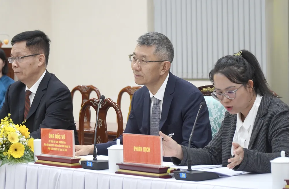 Phát biểu tại buổi làm việc, ông Bốc Vũ, Ủy viên Ủy ban Thường vụ Đại hội đại biểu Nhân dân tỉnh Giang Tô, Phó Chủ nhiệm Ủy ban Xã hội đánh giá cao sự phát triển của tỉnh trên các lĩnh vực.
