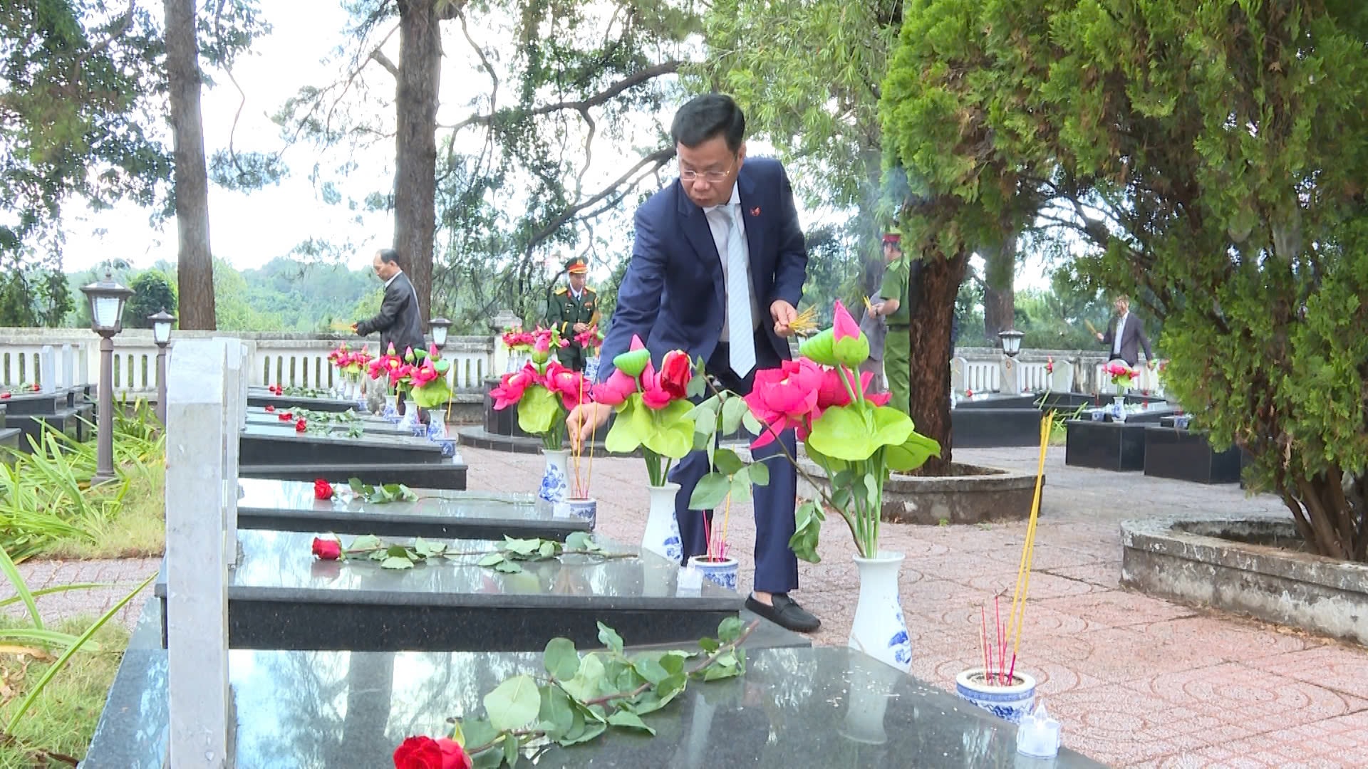Sau lễ dâng hương, dâng hoa, lãnh đạo tỉnh và các đại biểu đã thắp hương lên từng phần mộ các Anh hùng liệt sĩ tại Nghĩa trang Liệt sĩ Đắk Nông.