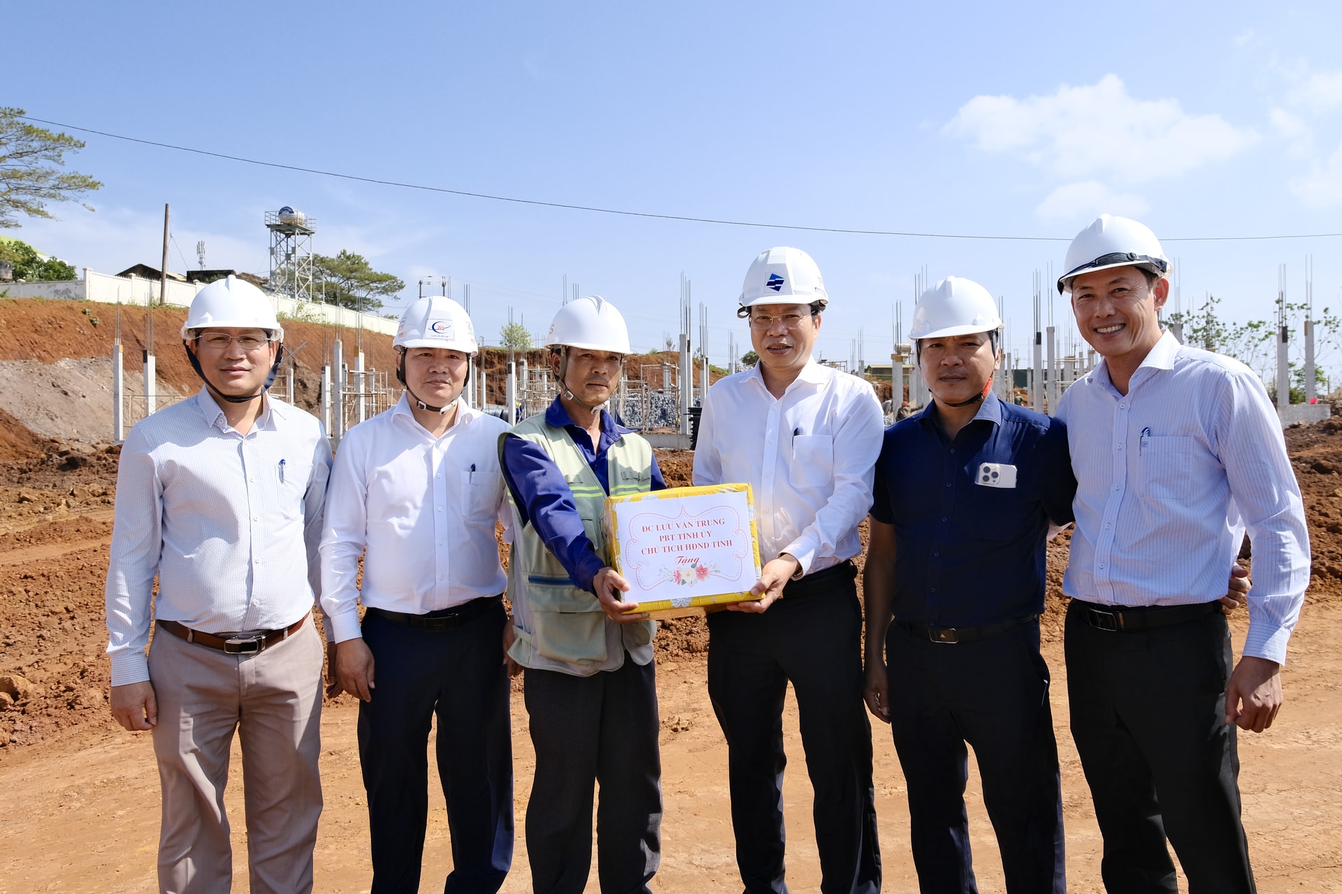 Nhân dịp này, Phó Bí thư Tỉnh ủy, Chủ tịch HĐND tỉnh Lưu Văn Trung cũng thăm hỏi, động viên và trao quà đầu xuân cho đội ngũ công nhân đang thi công tại dự án
