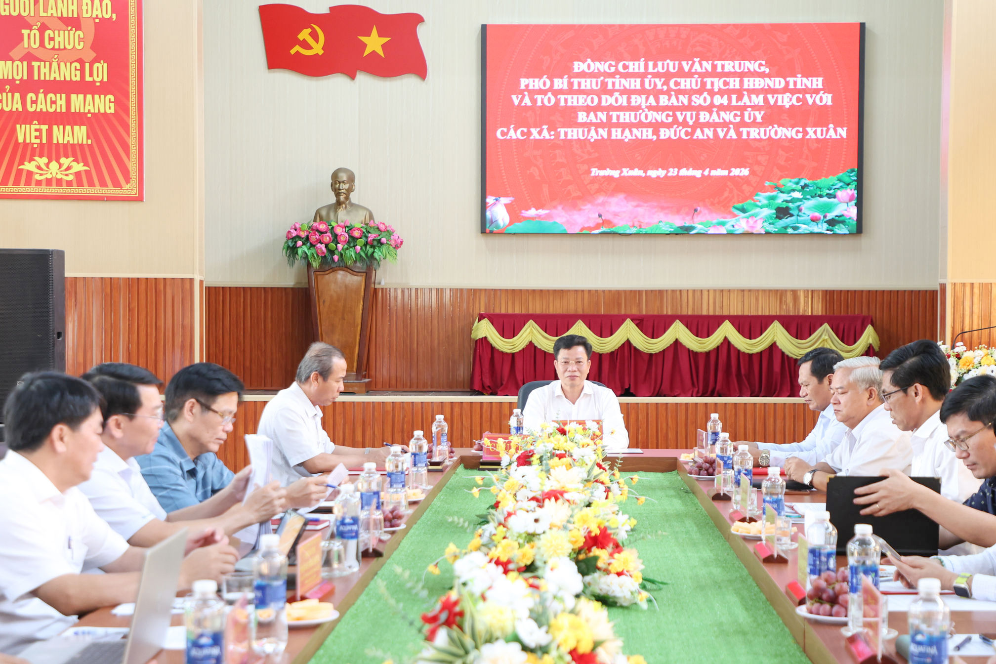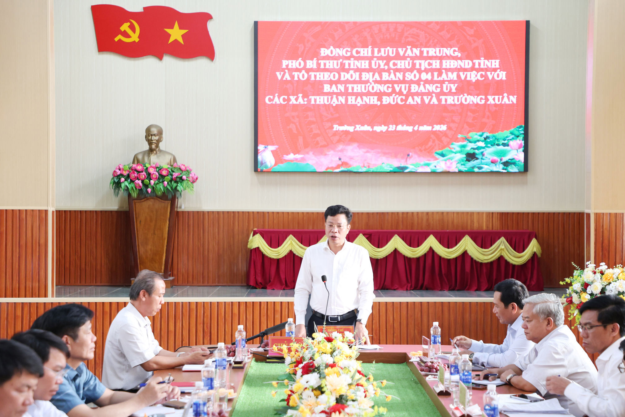 Phó Bí thư Tỉnh ủy, Chủ tịch HĐND tỉnh Lâm Đồng Lưu Văn Trung chủ trì buổi làm việc với Ban Thường vụ Đảng ủy xã Đức An, Thuận Hạnh và Trường Xuân