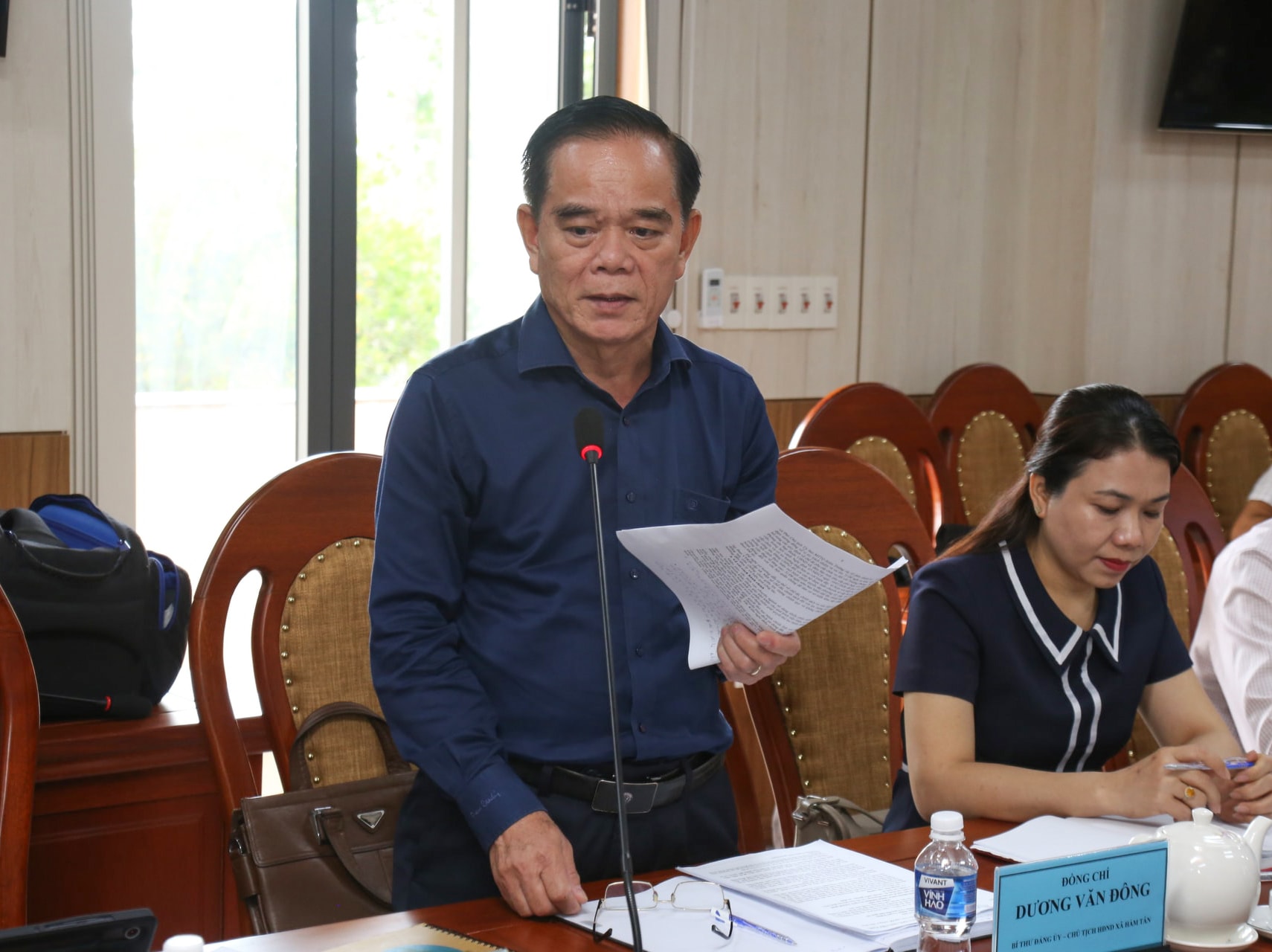 Đồng chí Dương Văn Đông, Bí thư xã Hàm Tân báo cáo tại buổi làm việc