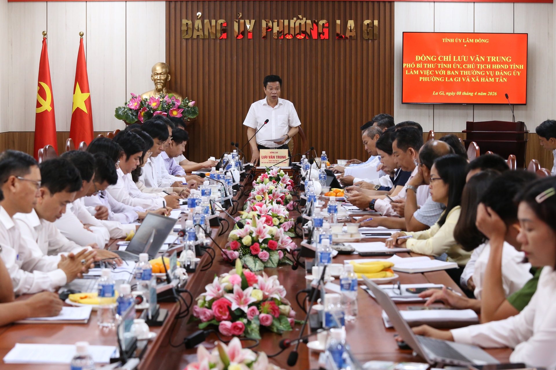 Đối với phường La Gi, đồng chí Lưu Văn Trung đề nghị địa phương xây dựng các sản phẩm du lịch, mô hình kinh doanh dịch vụ để phát huy thế mạnh về du lịch biển và khai thác thủy sản; tăng cường công tác tuyên truyền, kiên quyết xử lý các hành vi vi phạm khai thác thủy sản bất hợp pháp (IUU). Đồng thời rà soát, nghiên cứu phát triển các sản phẩm chế biến từ hải sản đặc trưng, nâng cao giá trị gia tăng…