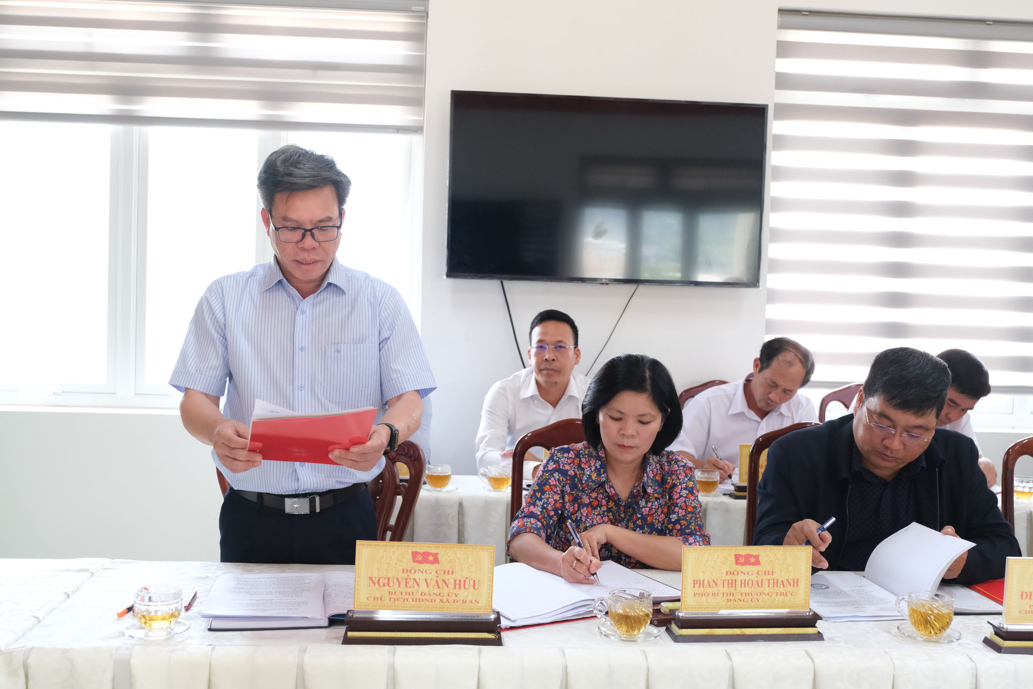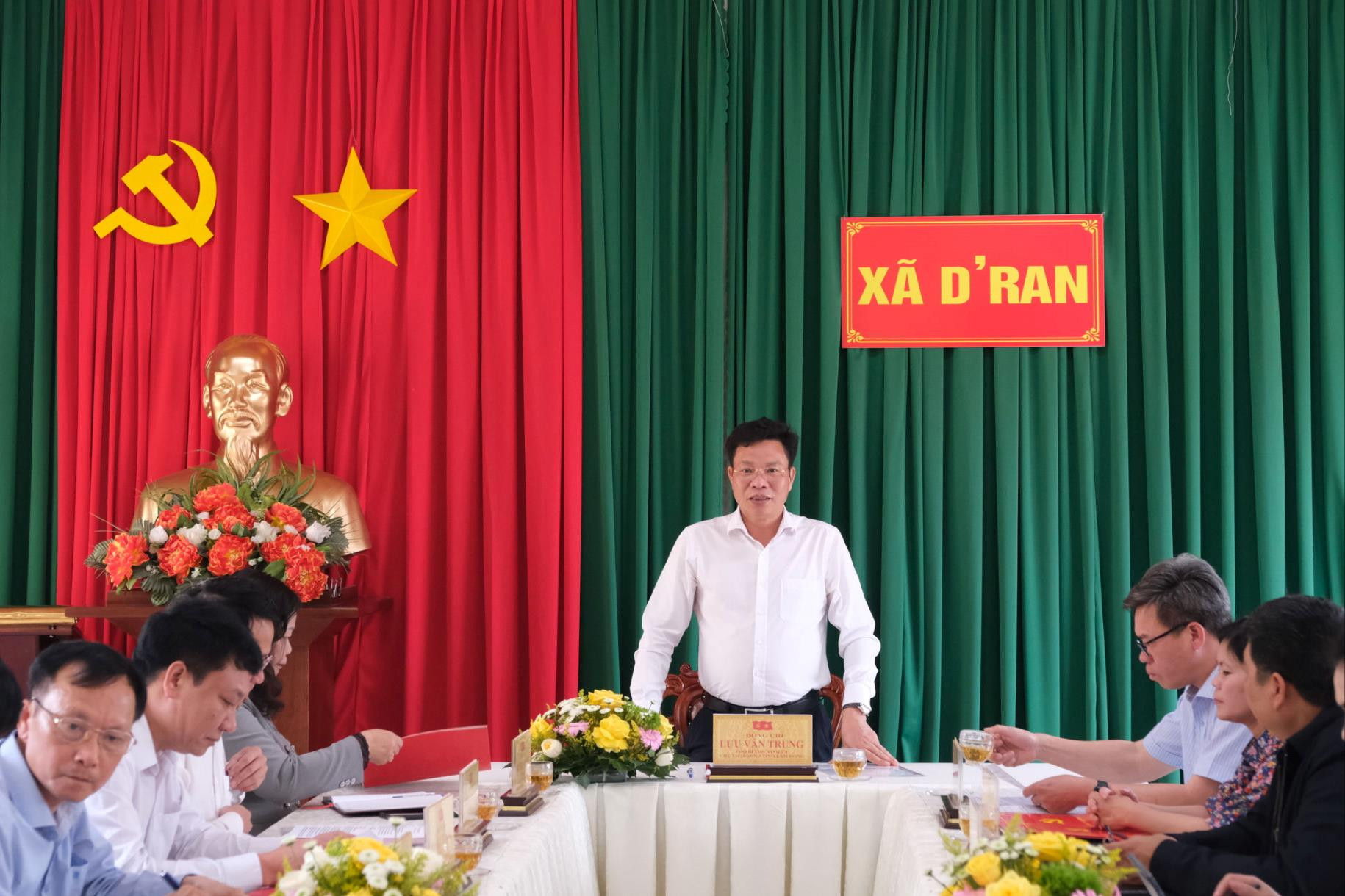 Lãnh đạo xã D'ran nêu báo cáo tình hình địa phương