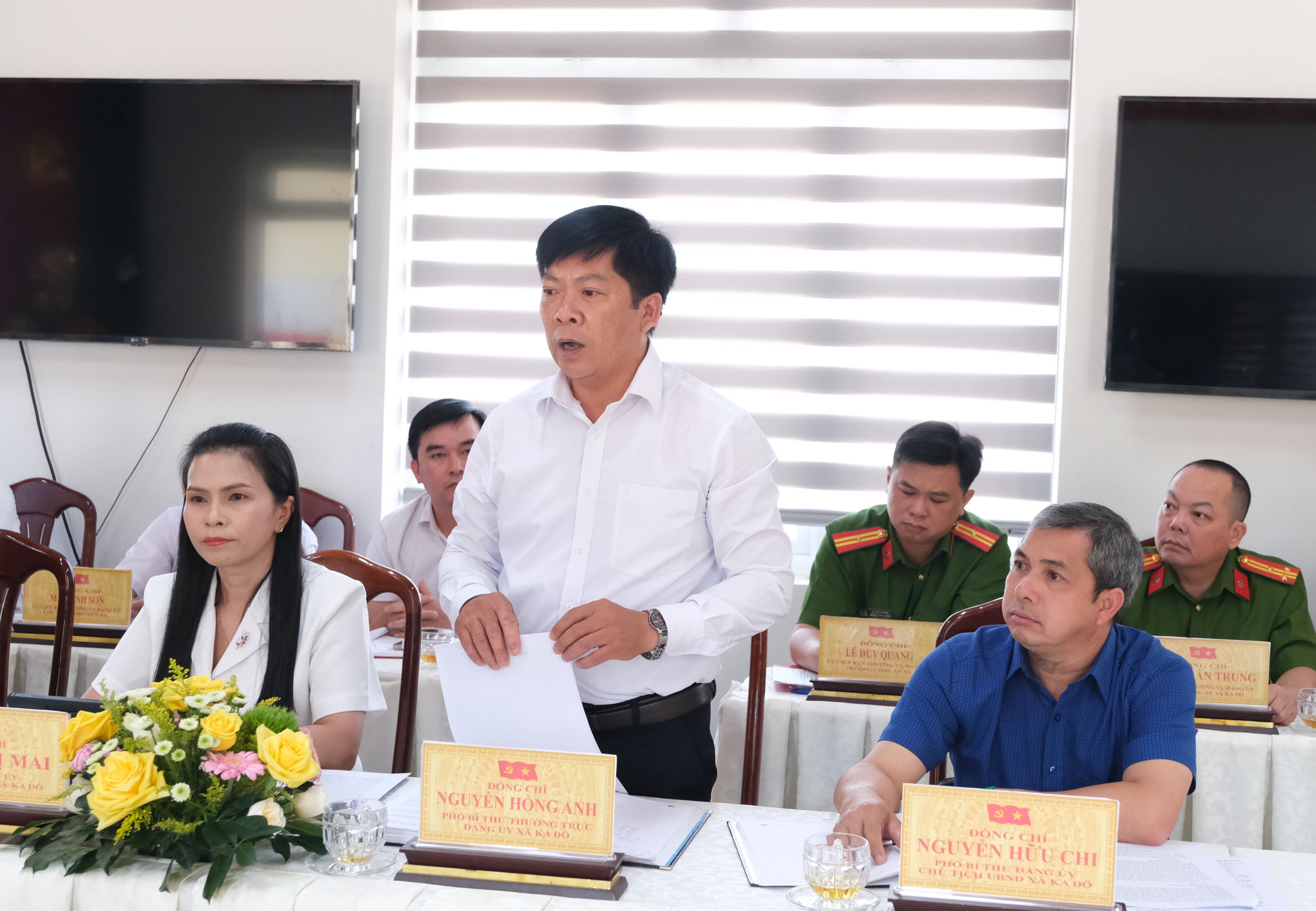 Lãnh đạo xã Ka Đô nêu báo cáo tình hình thực hiện nhiệm vu của địa phương quý I/2026