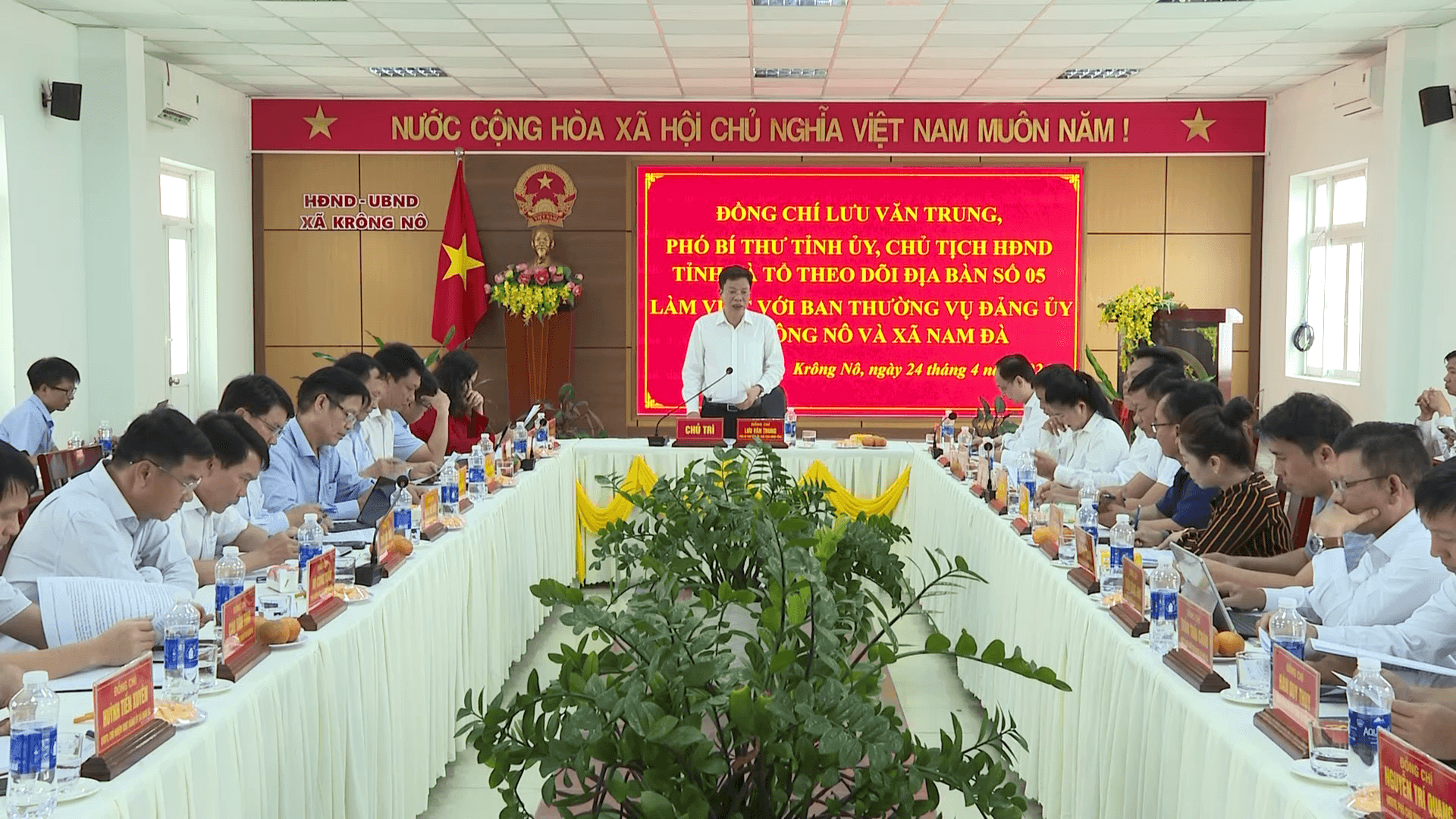 Lãnh đạo xã Krông Nô báo cáo tại buổi làm việc