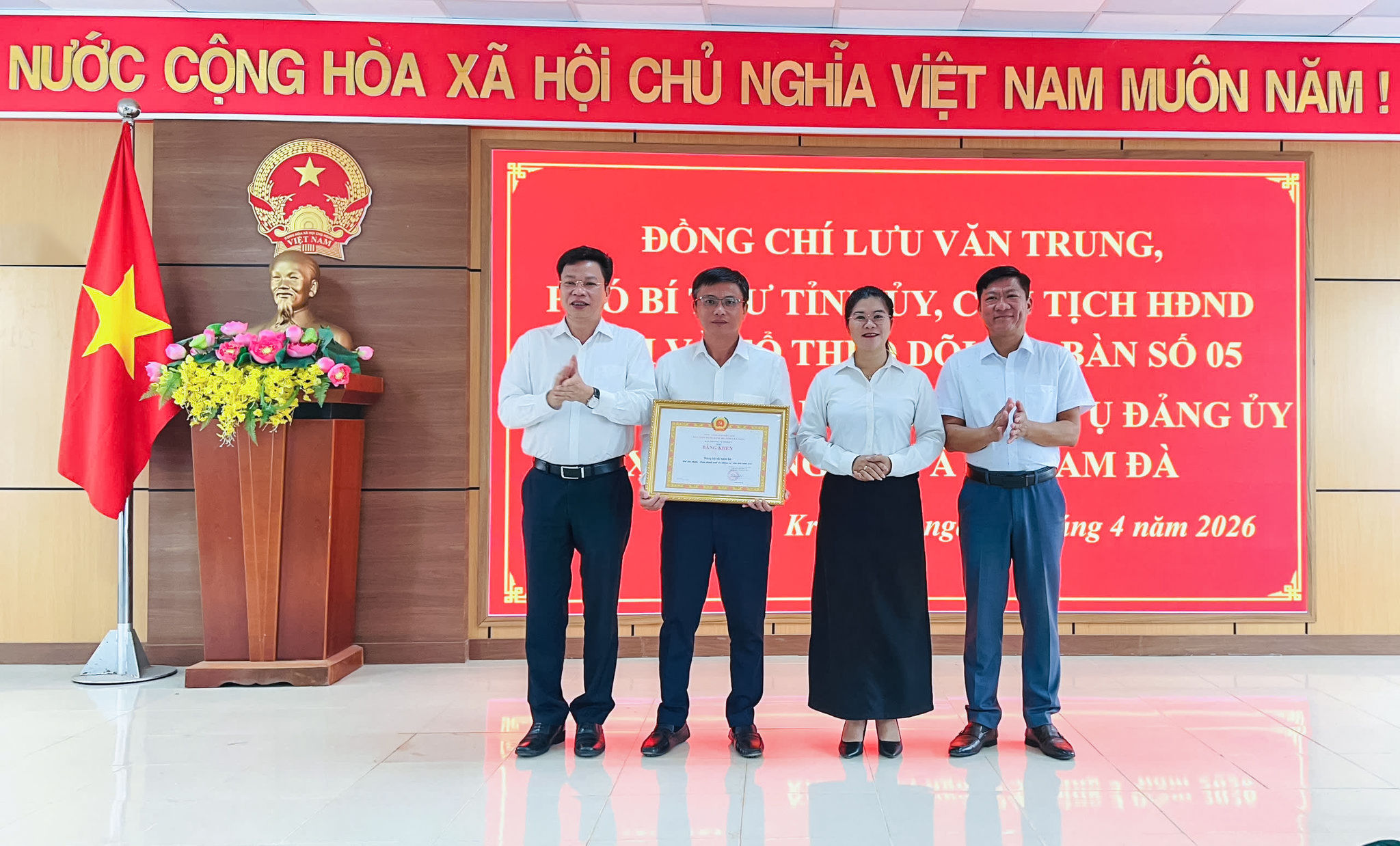 Dịp này, Phó Bí thư Tỉnh ủy, Chủ tịch HĐND tỉnh Lưu Văn Trung đã trao Bằng khen của Ban Thường vụ Tỉnh ủy cho Đảng bộ xã Nam Đà vì “Hoàn thành xuất sắc nhiệm vụ” tiêu biểu năm 2025.