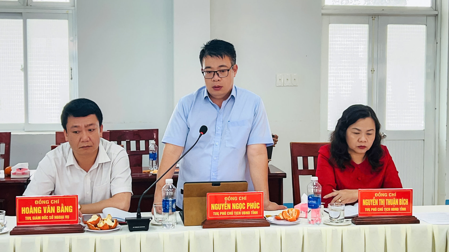 Tham dự buổi làm việc có các đồng chí: Nguyễn Thị Thuận Bích, Tỉnh ủy viên, Phó Chủ tịch HĐND tỉnh; Nguyễn Ngọc Phúc, Tỉnh ủy viên, Phó Chủ tịch UBND tỉnh.
