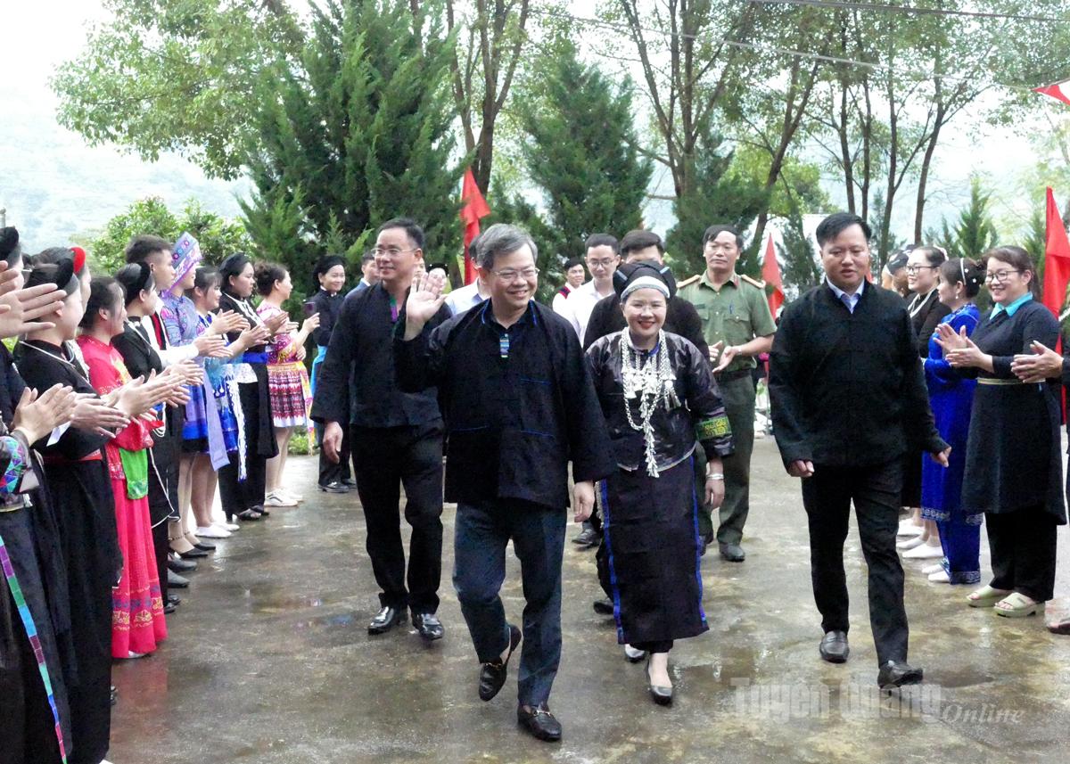Đồng chí Nguyễn Văn Sơn, Phó Bí thư, Chủ tịch HĐND tỉnh đến dự Ngày hội Đại đoàn kết thôn Táo Thượng, xã Pà Vầy Sủ.