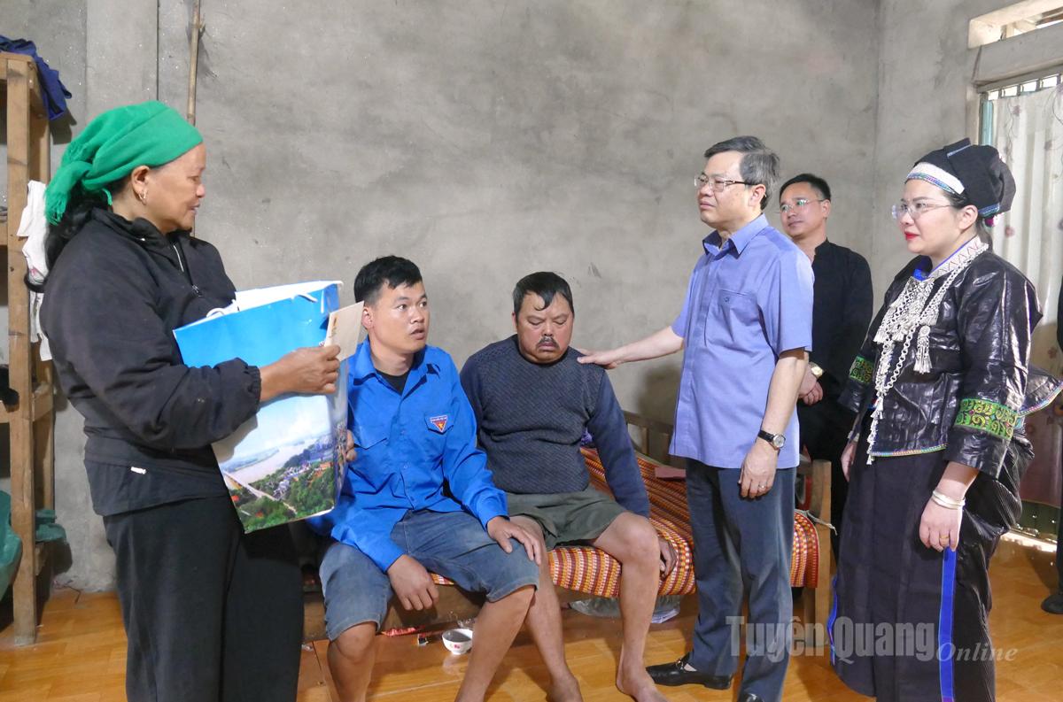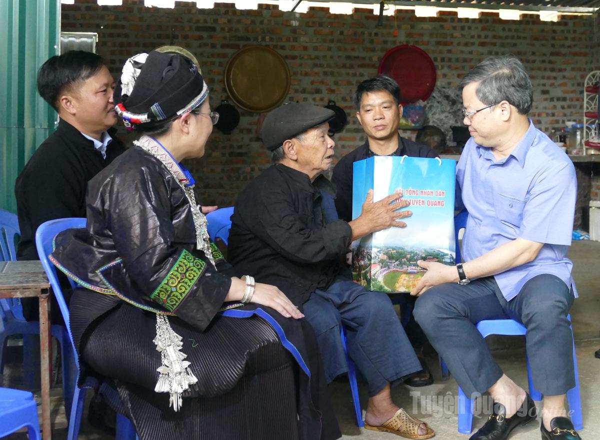 Đồng chí Phó Bí thư, Chủ tịch HĐND tỉnh Nguyễn Văn Sơn thăm, tặng quà gia đình ông Vàng Văn Hương, thôn Táo Thượng.