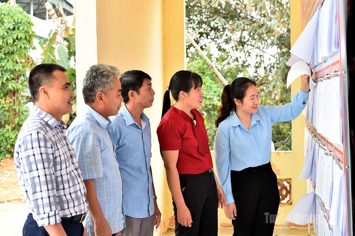 Cử tri xã Trường Sinh tìm hiểu thông tin về các ứng cử viên đại biểu Quốc hội và HĐND tỉnh.