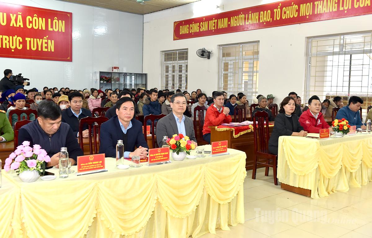 Tại chương trình, Chủ tịch HĐND tỉnh Nguyễn Văn Sơn cùng các đồng chí lãnh đạo đã trao 200 suất quà cho các hộ gia đình khó khăn xã Côn Lôn. Số quà do Công ty TNHH Đầu tư và Xây dựng Thành Hưng tài trợ.