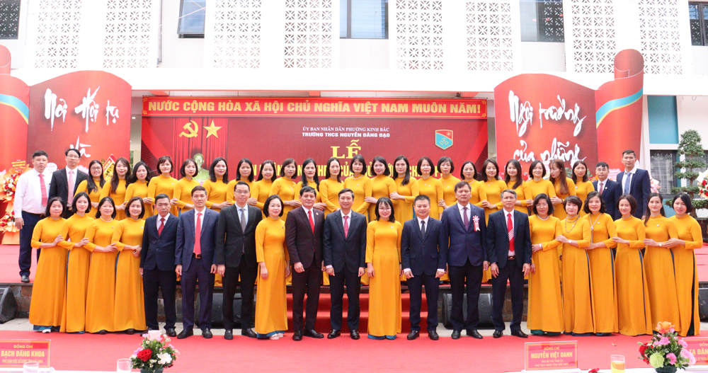 Tới dự và chúc mừng có các đồng chí: Nguyễn Việt Oanh, Phó Bí thư Tỉnh ủy, Chủ tịch HĐND tỉnh; Tạ Đăng Đoan, Ủy viên Ban Thường vụ Tỉnh ủy, Bí thư Đảng ủy phường Kinh Bắc; lãnh đạo Ủy ban MTTQ tỉnh, Sở Giáo dục và Đào tạo cùng các thế hệ giáo viên và học sinh toàn trường.