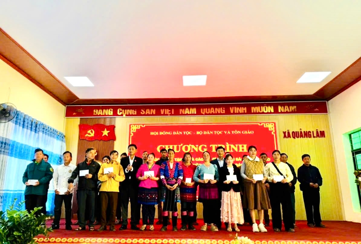 Chủ tịch Hội đồng Dân tộc Lâm Văn Mẫn trao quà tặng các gia đình chính sách, hộ nghèo trên địa bàn xã Quảng Lâm, Điện Biên