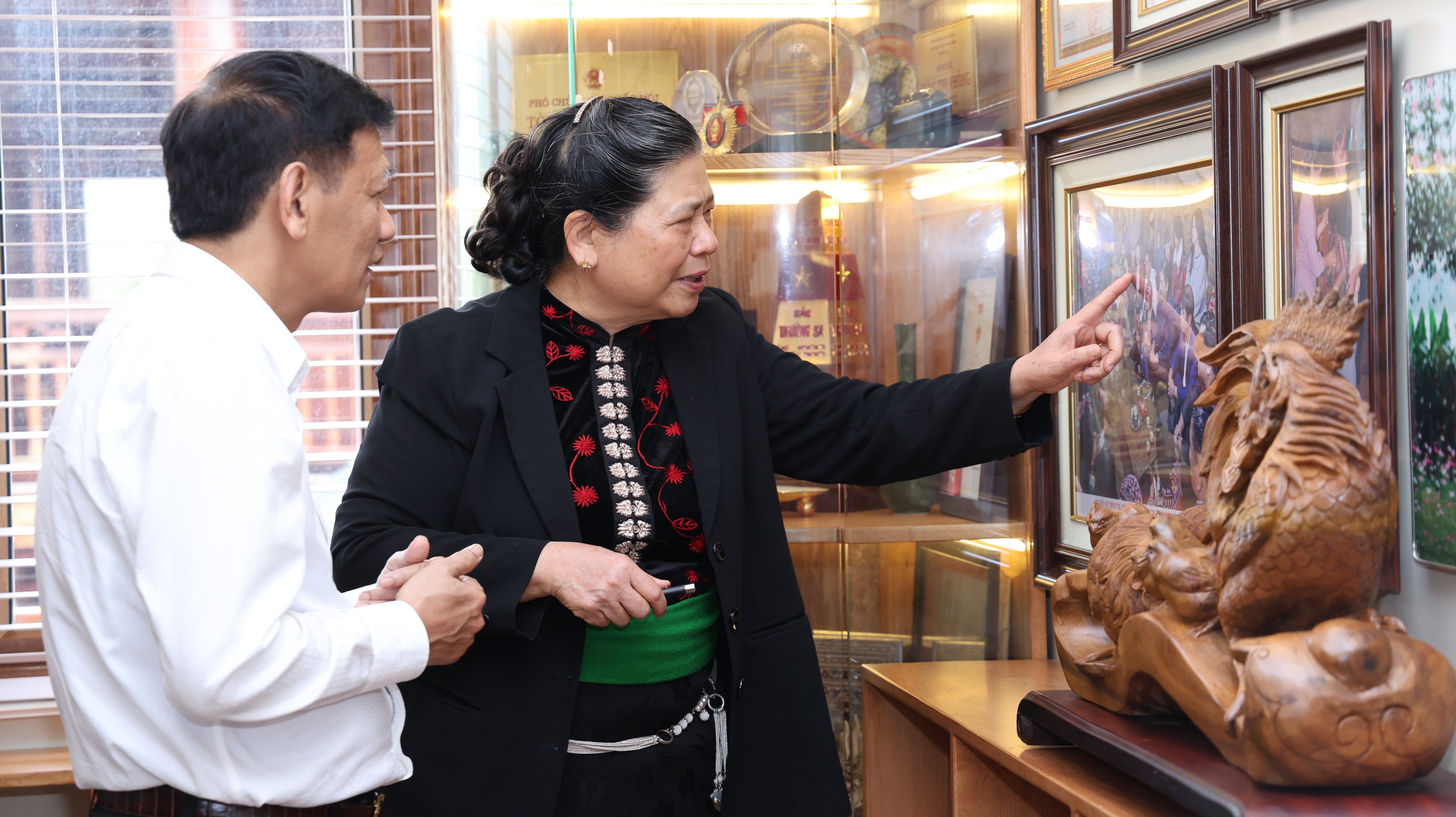Thăm hỏi sức khỏe nguyên Phó Chủ tịch Thường trực Quốc hội Tòng Thị Phóng, Chủ tịch Hội đồng Dân tộc Lâm Văn Mẫn thông tin khái quát về kết quả hoạt động của Hội đồng Dân tộc trong năm 2025, đặc biệt là công tác tham mưu xây dựng, hoàn thiện chính sách, pháp luật về lĩnh vực dân tộc; hoạt động giám sát, khảo sát, quyết định các vấn đề quan trọng của đất nước.